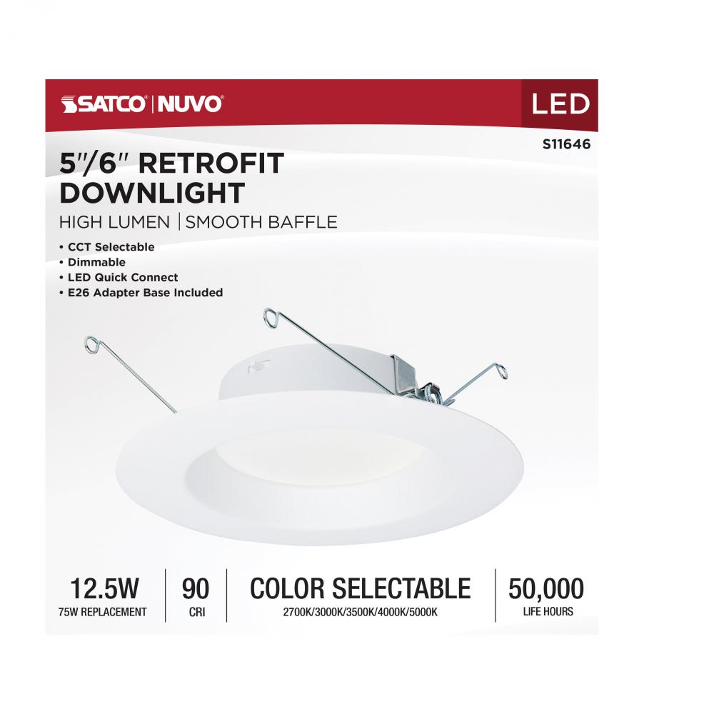 12.5 Watt LED High Lumen Downlight Retrofit; 5-6 Inch; 27K/30K/35K/40K/50K CCT Selectable; 120 by Satco Products Inc.