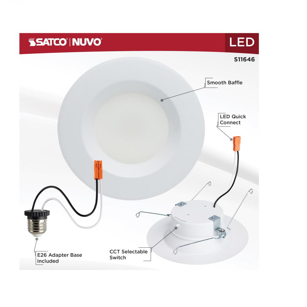 SATCO NUVO's LED CCT Selectable 5-6 inch High Lumen Retrofit Downlight, S11646, will elevate the lighting in any space. Designed with impeccable 90 CRI color rendering, you can make your space brighter while saving energy with this 1,100 high lumen LED