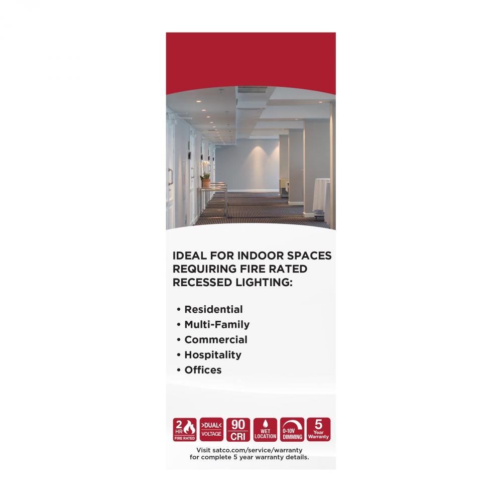 SATCO NUVO's Fire Rated Downlights are the perfect solution for installations with low ceiling clearance. Designed to provide exceptional illumination, these downlights provide two hours of protection in the event of a fire. Increase safety and peace o