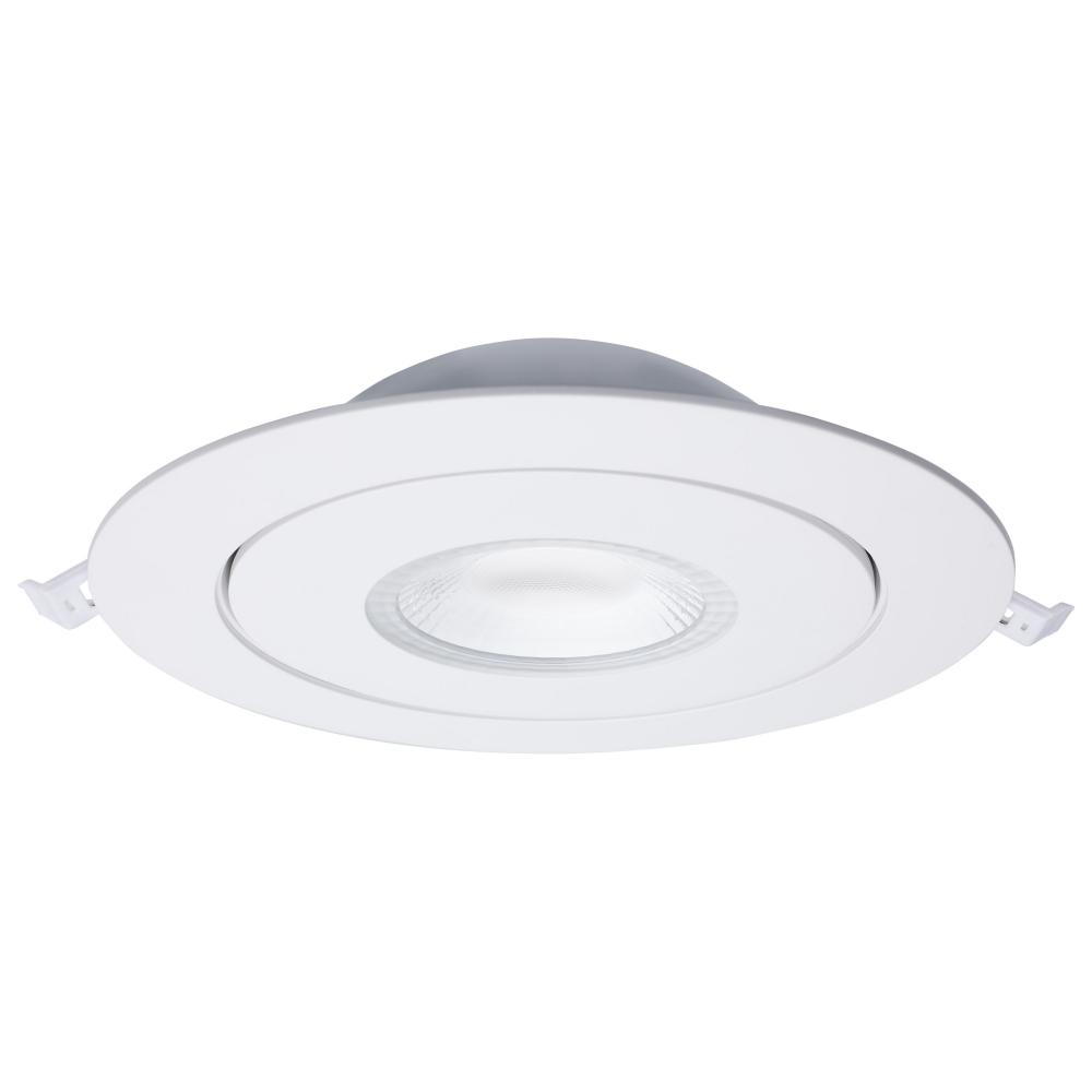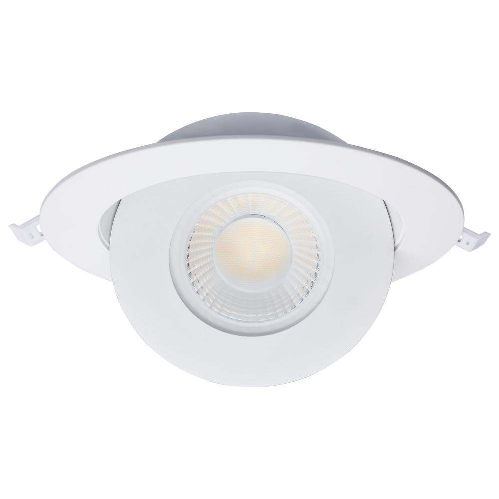 The white, six inch round, Satco S11860 gimbaled downlight delivers multiple advantages to any general recessed lighting project. Our ColorQuick technology allows the user to choose the color temperature from five different settings and brings the perfect