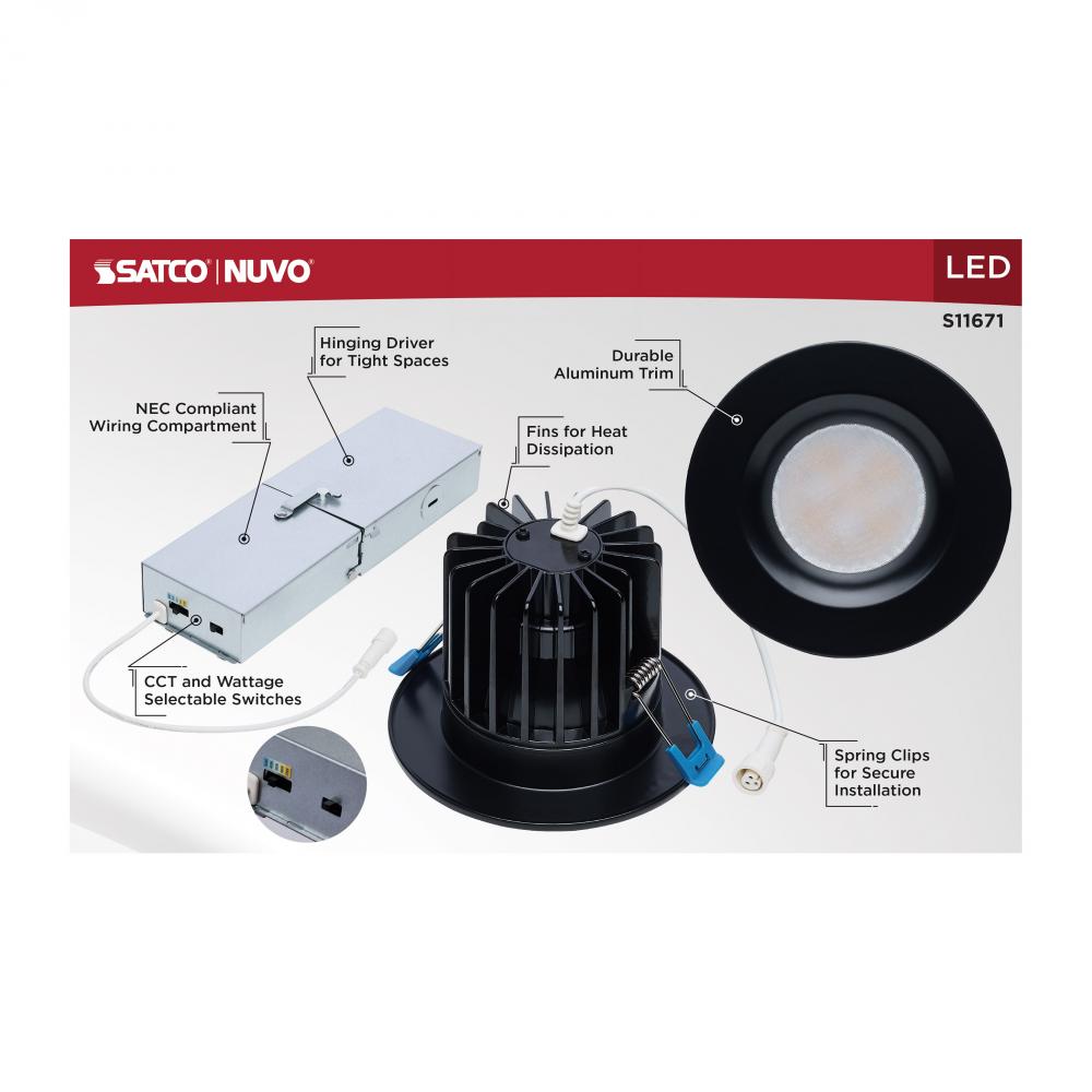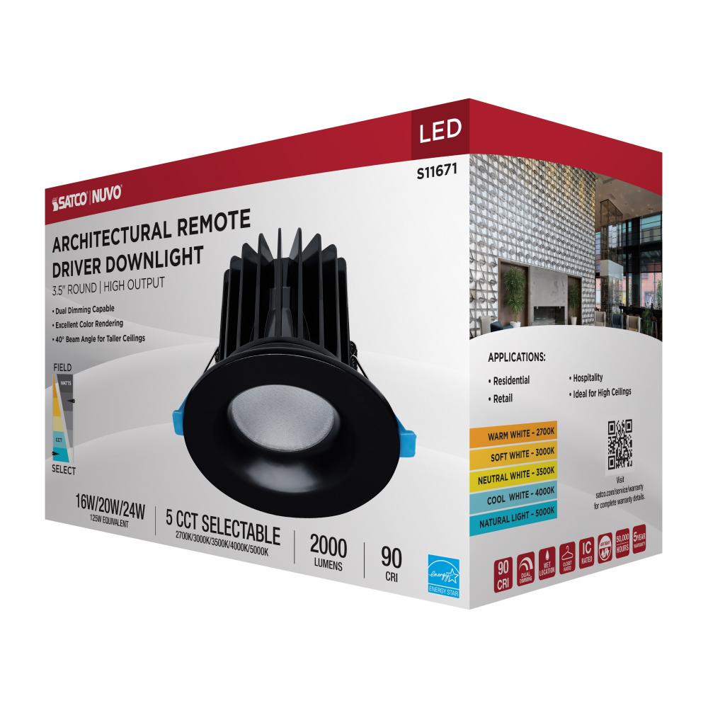 16/20/24 Watt LED Remote Driver Downlight; 27K/30K/35K/40K/50K CCT; Field Selectable; Round; Black by Satco Products Inc.