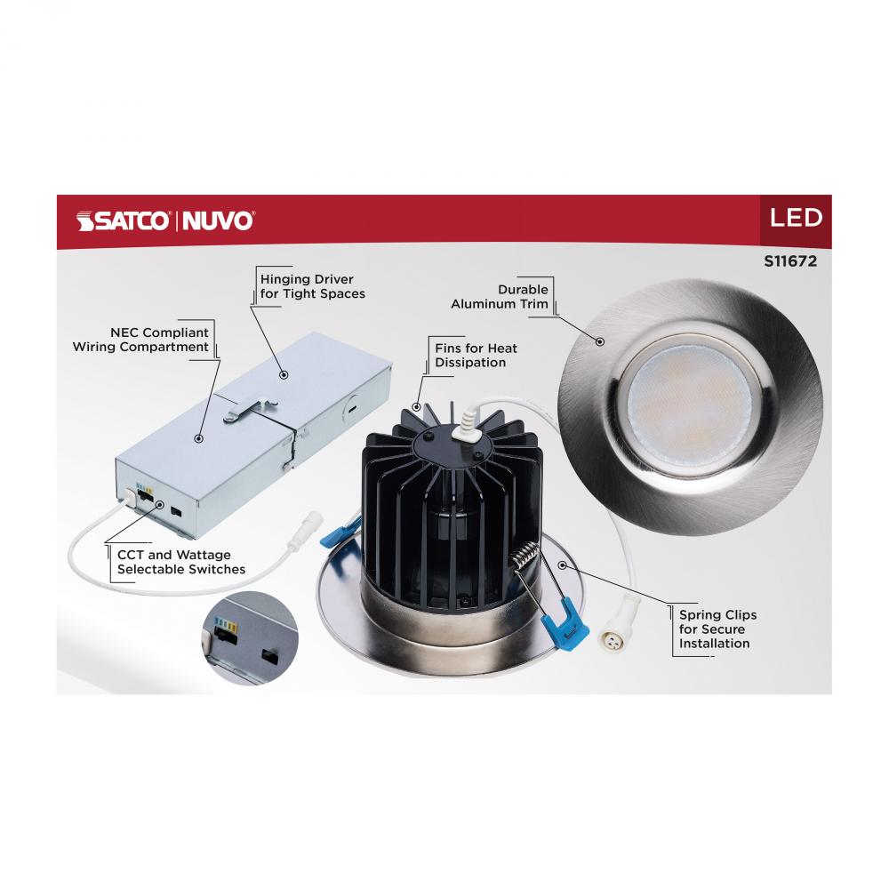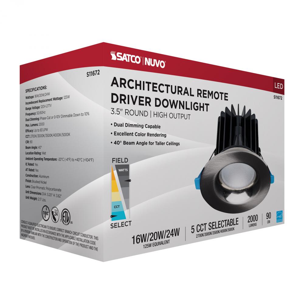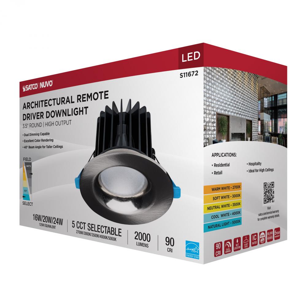 16/20/24 Watt LED Remote Driver Downlight; 27K/30K/35K/40K/50K CCT; Field Selectable; Round; Brushed by Satco Products Inc.
