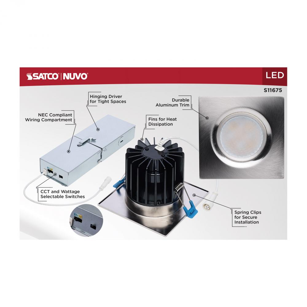 16/20/24 Watt LED Remote Driver Downlight; 27K/30K/35K/40K/50K CCT; Field Selectable; Square; by Satco Products Inc.