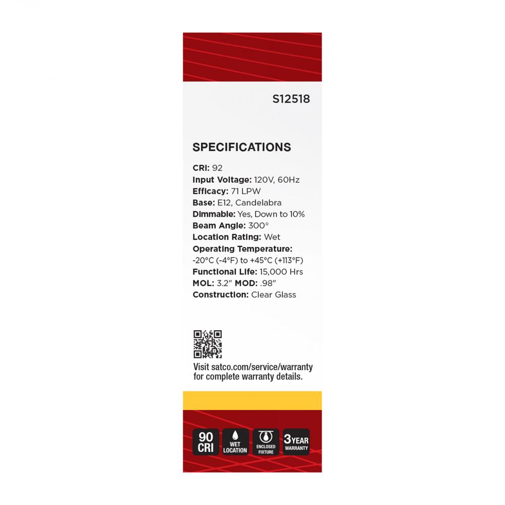 Satco's S12518 2.8-watt, LED lamp is traditional, yet contemporary with its vintage style and energy saving LED technology. Elegantly illuminate any room in the house with this dimmable, clear bulb. Sophisticated and modern, this lamp delivers 15,000 h