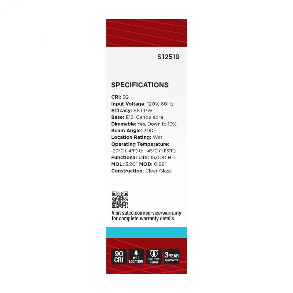 2.8 Watt T6 LED; Candelabra Base; Clear; 5000K CCT; 120 Volt by Satco Products Inc.