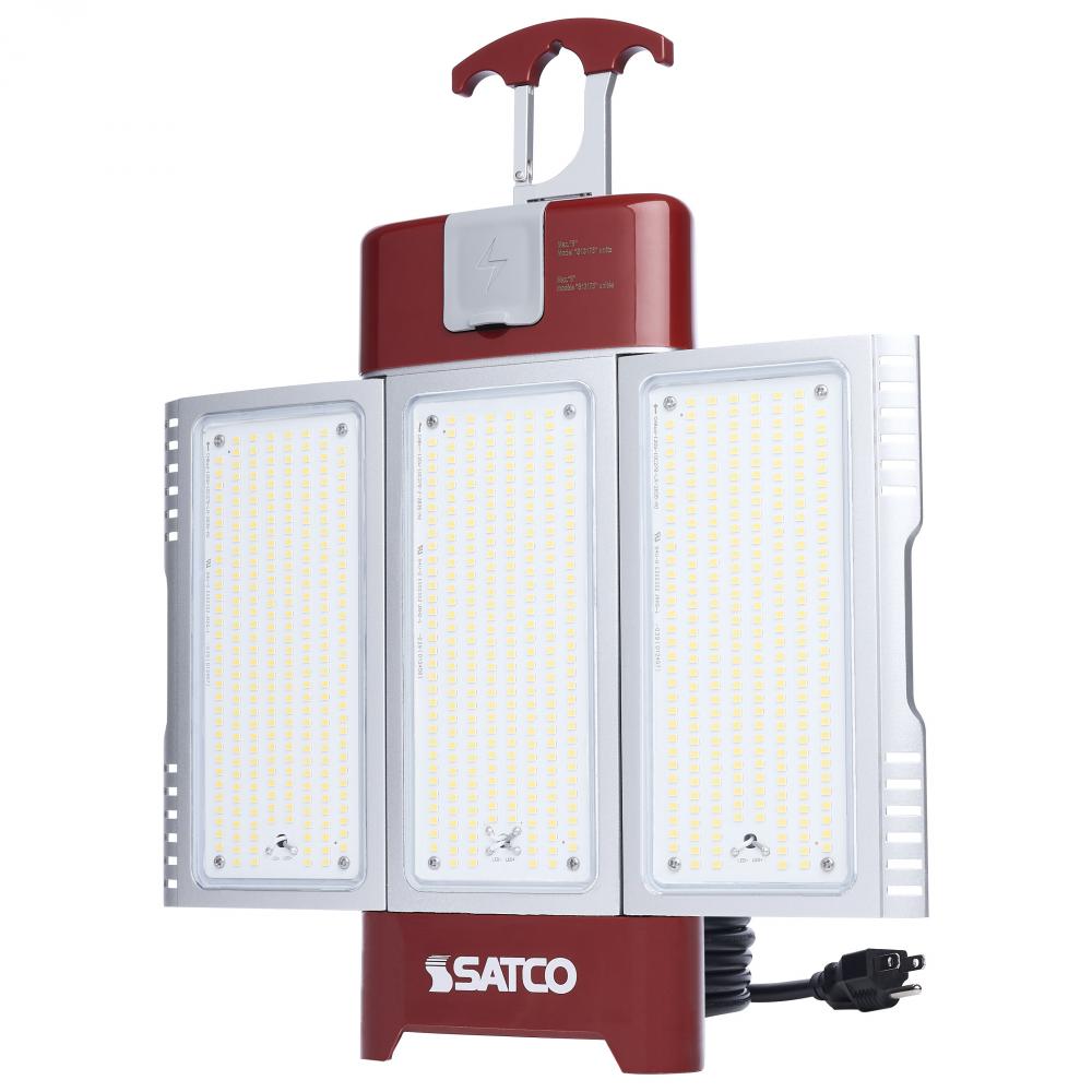 SATCO NUVO's Multi-Beam Temporary Work Light offers powerful, flexible illumination in a sleek new design. This 120V fixture features selectable wattages from 30W to 120W, producing up to 19,820 lumens at 5000K. Dual light panels expand from 10 to 360