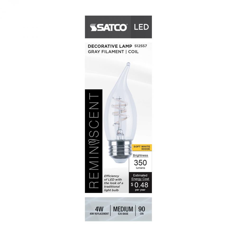 4 Watt CA11 LED; Reminiscent; Flex Gray Coil Filament; E26; 3000K; 120 Volt by Satco Products Inc.