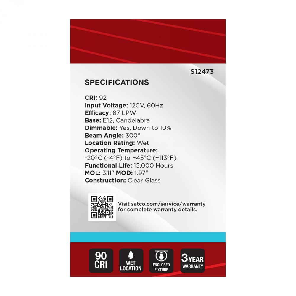 4 Watt G16.5 LED; Candelabra Base; Clear; 5000K CCT; 120 Volt by Satco Products Inc.