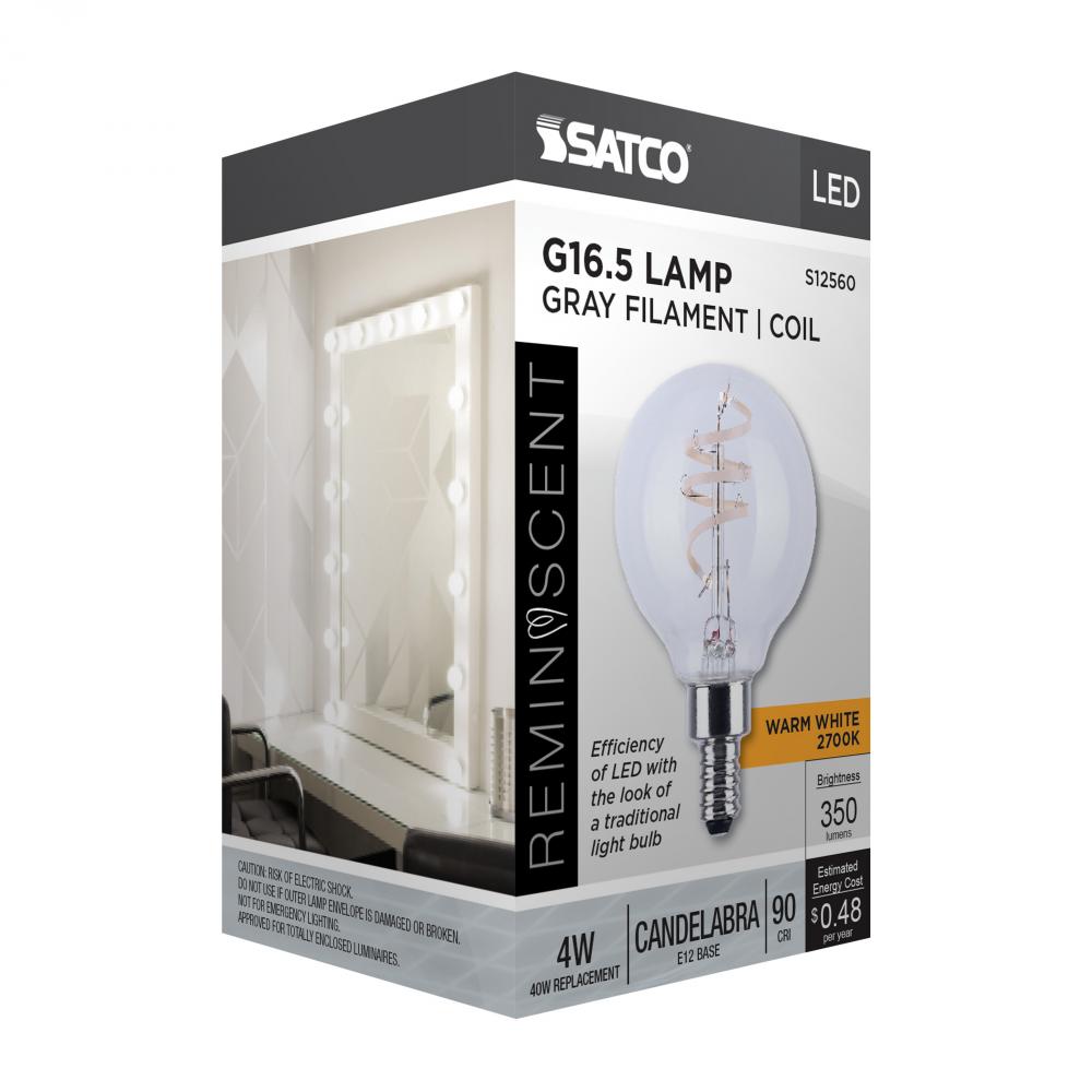 4 Watt G16.5 LED; Reminiscent; Flex Gray Coil Filament; E12; 2700K; 120 Volt by Satco Products Inc.