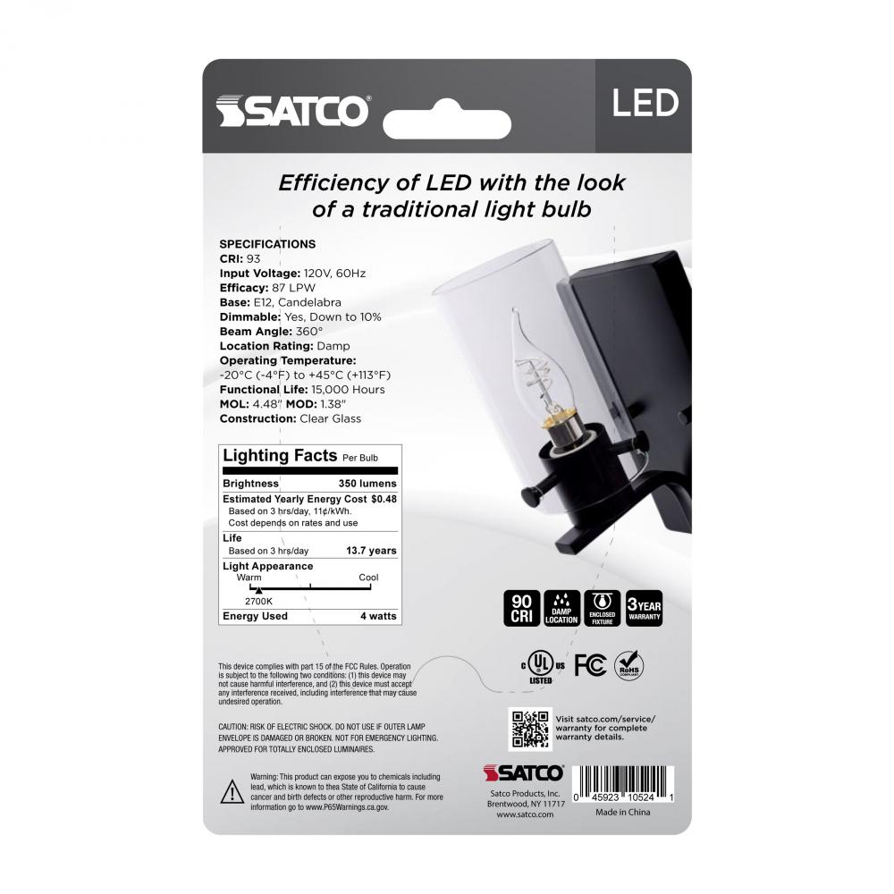 4 Watt LED; Reminiscent; Flex Gray Coil Filament; CA11; Candelabra Base; 2700K CCT; Clear; 120 Volt; by Satco Products Inc.