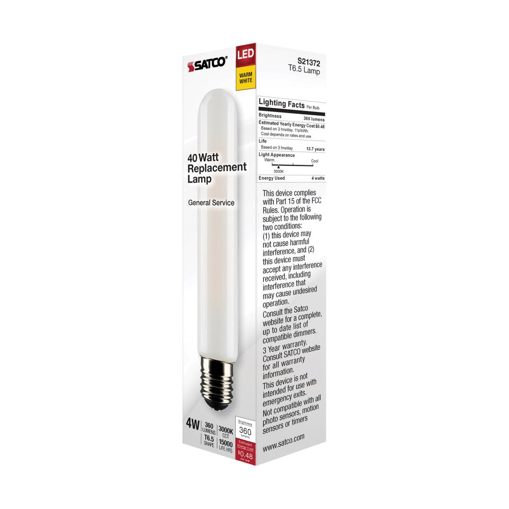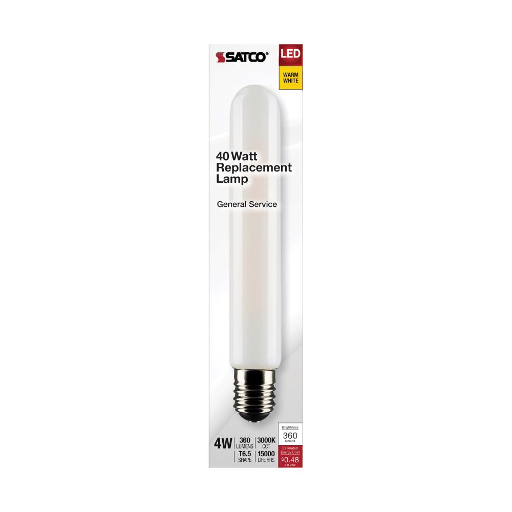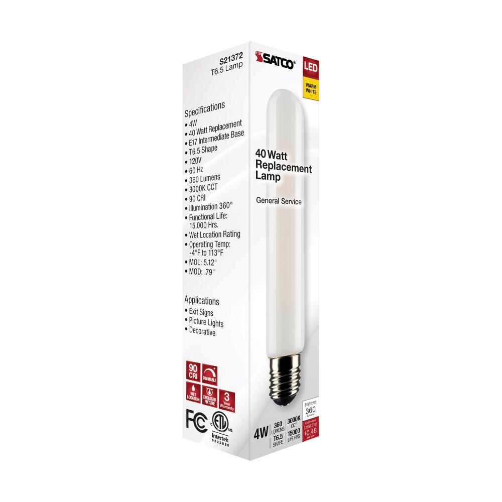 4 Watt T6.5 LED Filament; Frosted; Intermediate Base; 3000K; 360 Lumens; 120 Volt by Satco Products Inc.