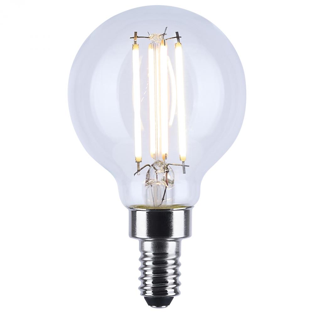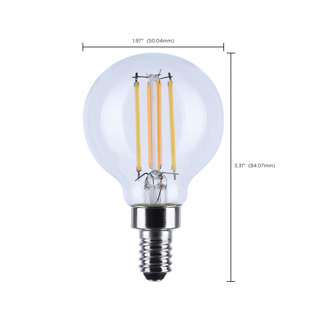 4.5 Watt LED G16.5; 3000K-2000K Warm Dimming; Candelabra Base; Clear Finish by Satco Products Inc.
