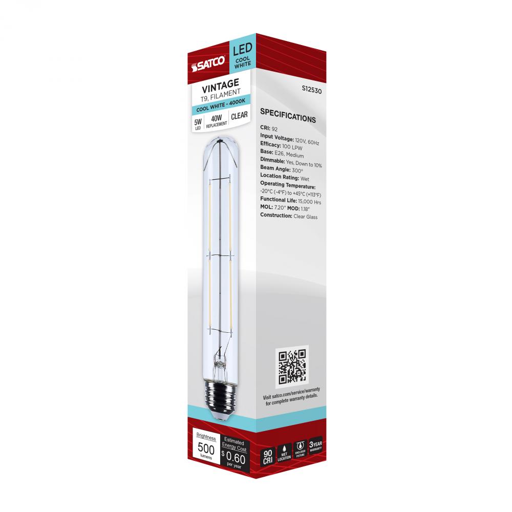 Satco's 5-watt, T9 LED lamp is traditional, yet contemporary with its vintage style and energy saving LED technology. Elegantly illuminate any room in the house with this dimmable, clear bulb. Sophisticated and modern, this lamp delivers 15,000 hours o