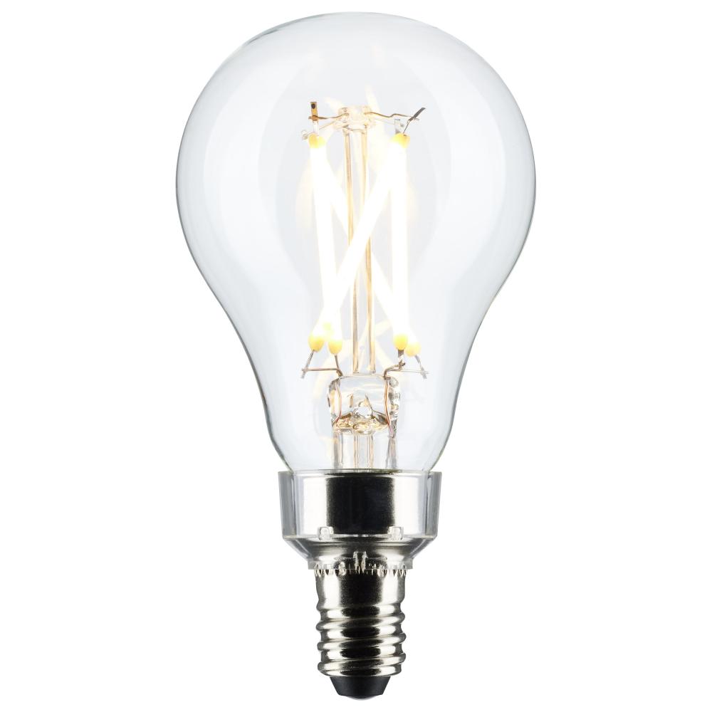 Satco's S21871 5.5-watt, A15 LED bulb with a candelabra base is dimmable and offers warm white light with a 300 degree beam spread. Wet rated for use in kitchens and bathrooms, the carded 2-pack is suitable for retail display. Elegant and long-lasting,