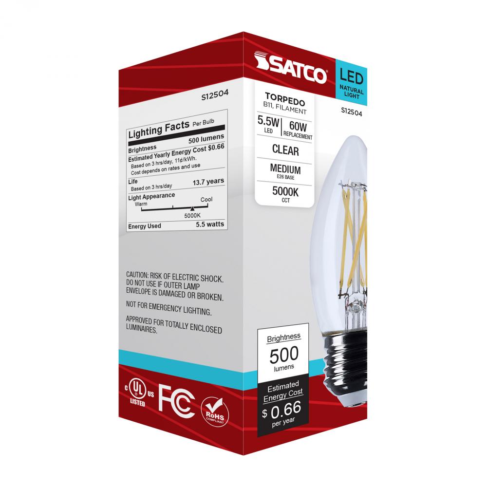 5.5 Watt B11 LED; Medium Base; Clear; 5000K CCT; 120 Volt by Satco Products Inc.