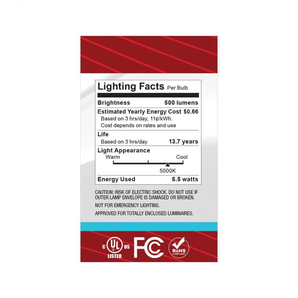 5.5 Watt G16.5 LED; Medium Base; Clear; 5000K CCT; 120 Volt