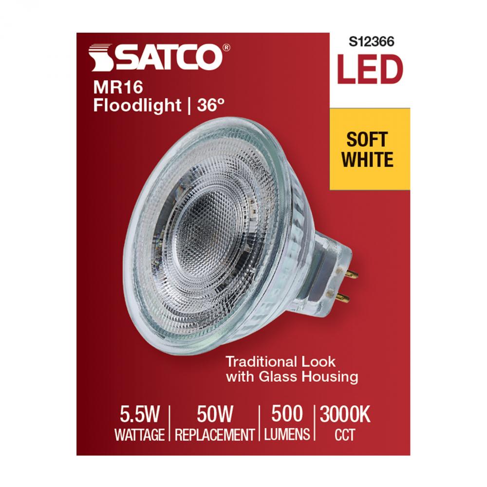5.5 Watt MR16 LED Floodlight; 3000K CCT; GU5.3 Base; 12 Volt by Satco Products Inc.