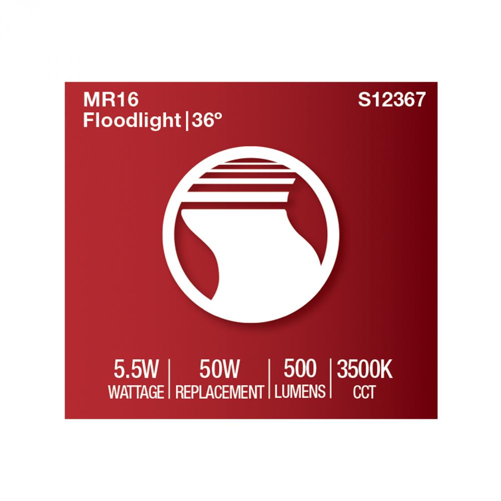 5.5 Watt MR16 LED Floodlight; 3500K CCT; GU5.3 Base; 12 Volt