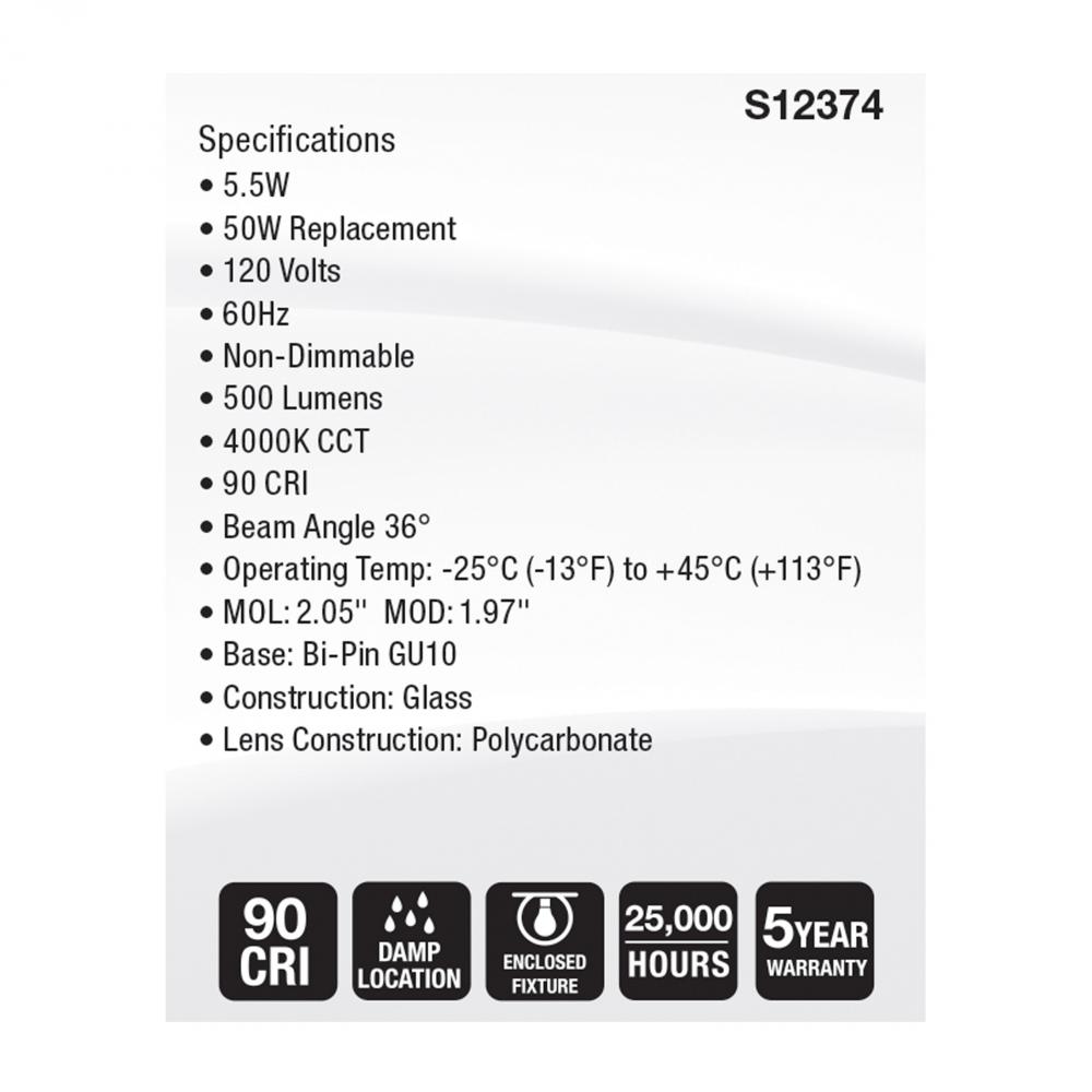SATCO S12374 MR16 lamps provide high color accuracy with a 90 CRI and are dimmable for customizable lighting. These lamps are also damp location rated, and suitable for use in enclosed fixtures. Perfect for a variety of residential and commercial applicati