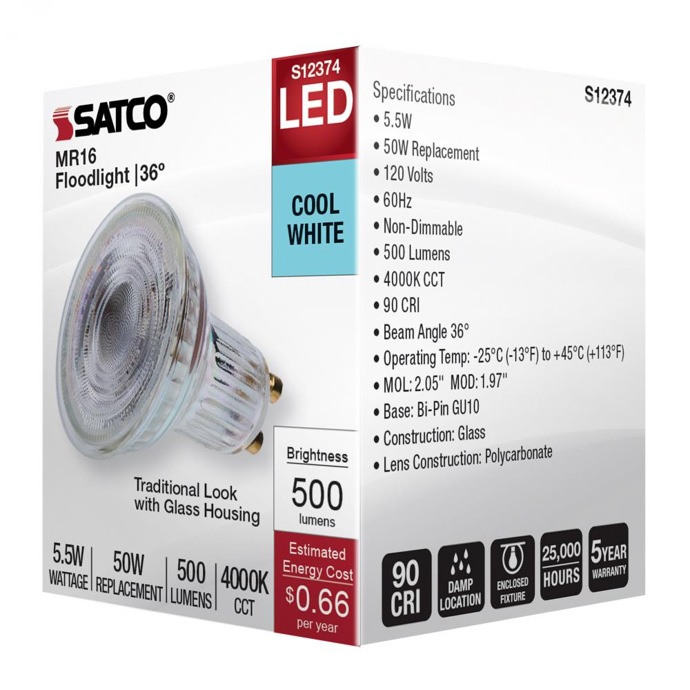 5.5 Watt MR16 LED Floodlight; 4000K CCT; GU10 Base; 120 Volt by Satco Products Inc.