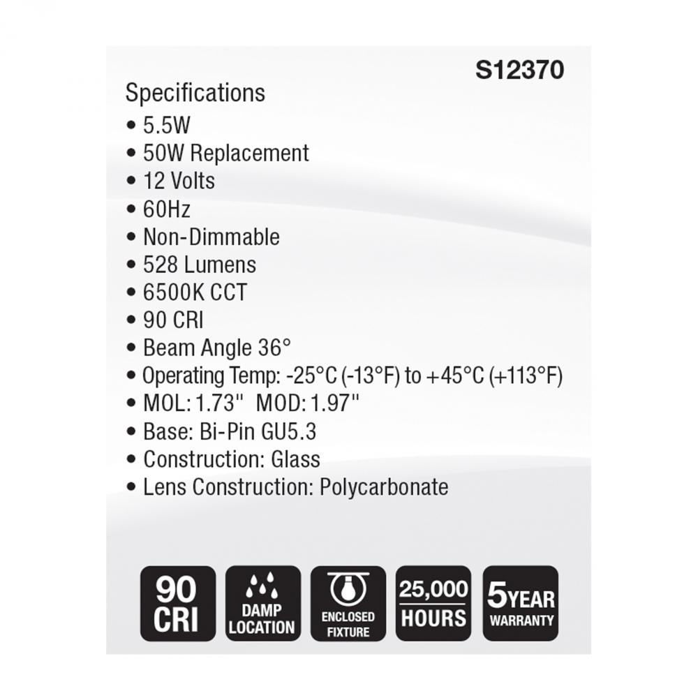 5.5 Watt MR16 LED Floodlight; 6500K CCT; GU5.3 Base; 12 Volt