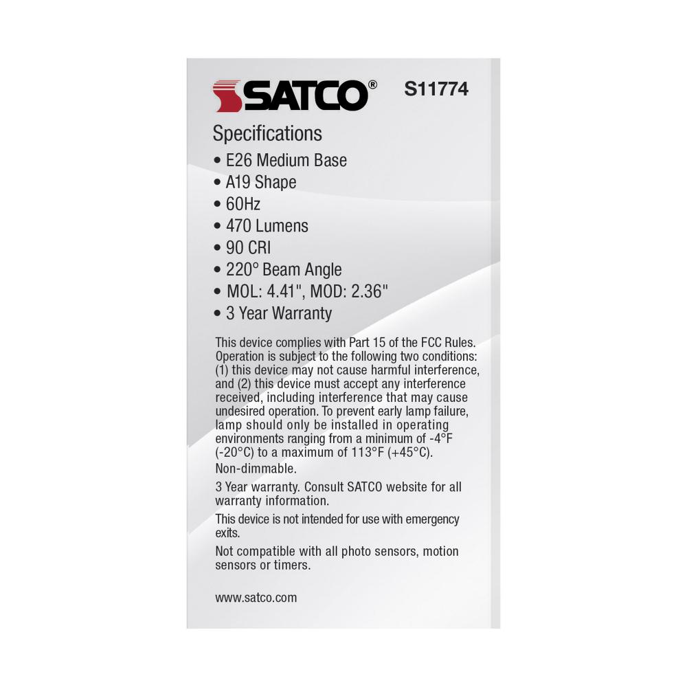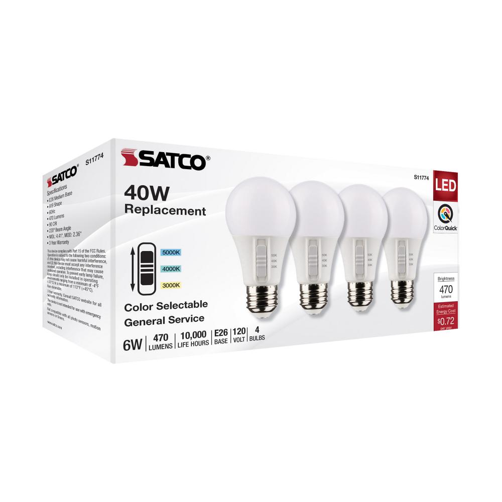 6 Watt A19 LED; Medium Base; CCT Selectable; White Finish; 90 CRI; 120 Volt; 4 Pack by Satco Products Inc.