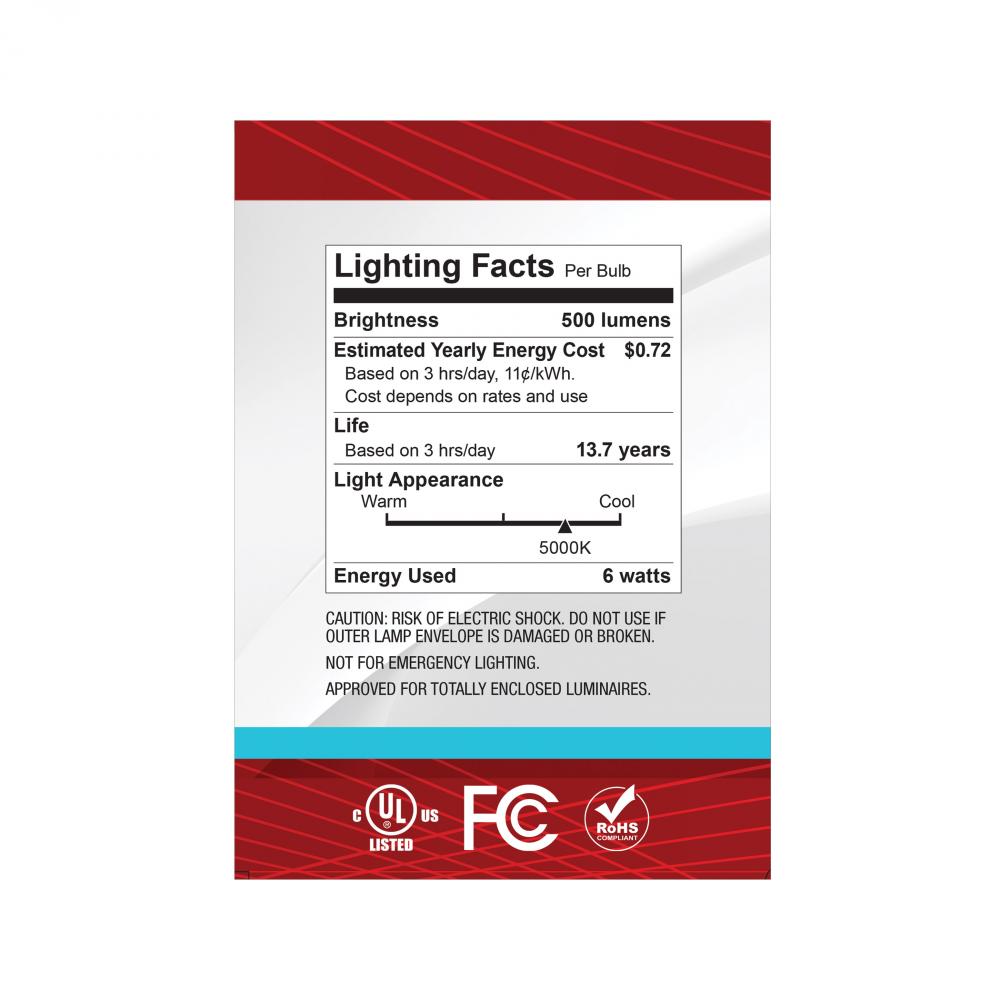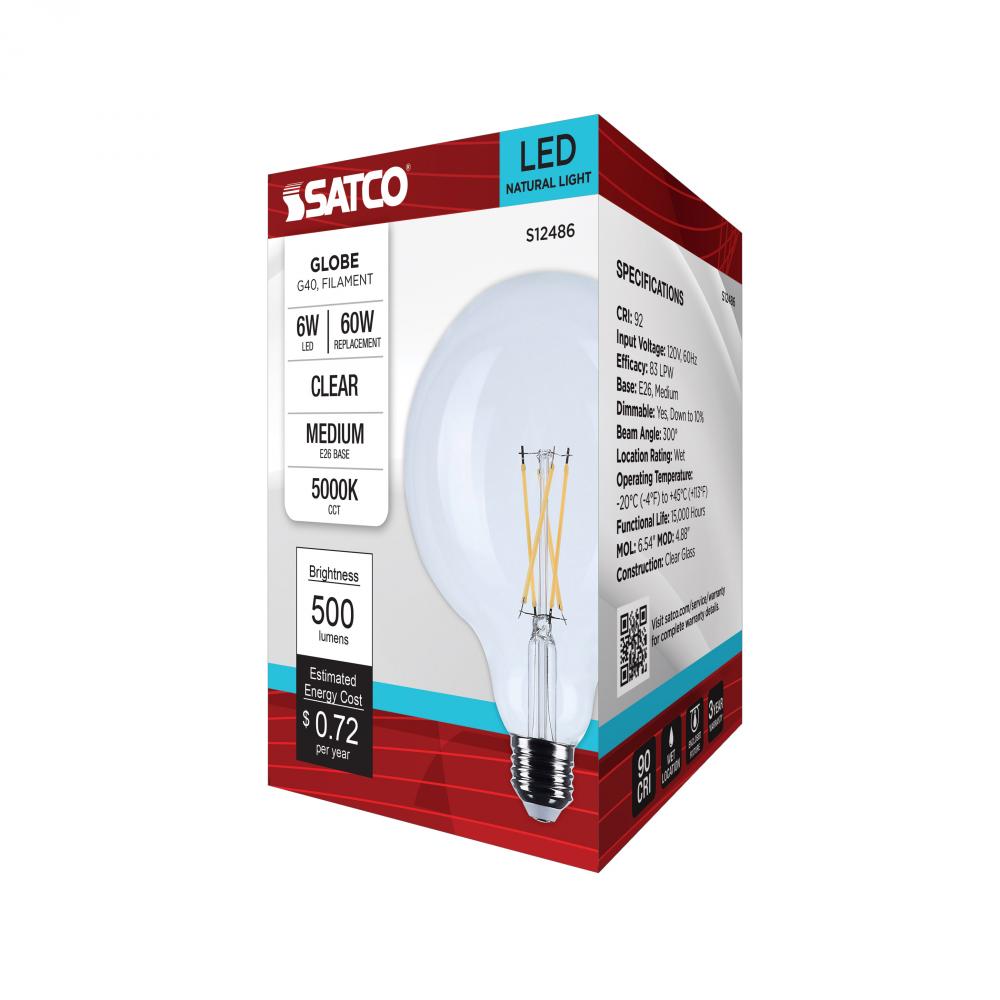 6 Watt G40 LED; Medium Base; Clear; 5000K CCT; 120 Volt by Satco Products Inc.