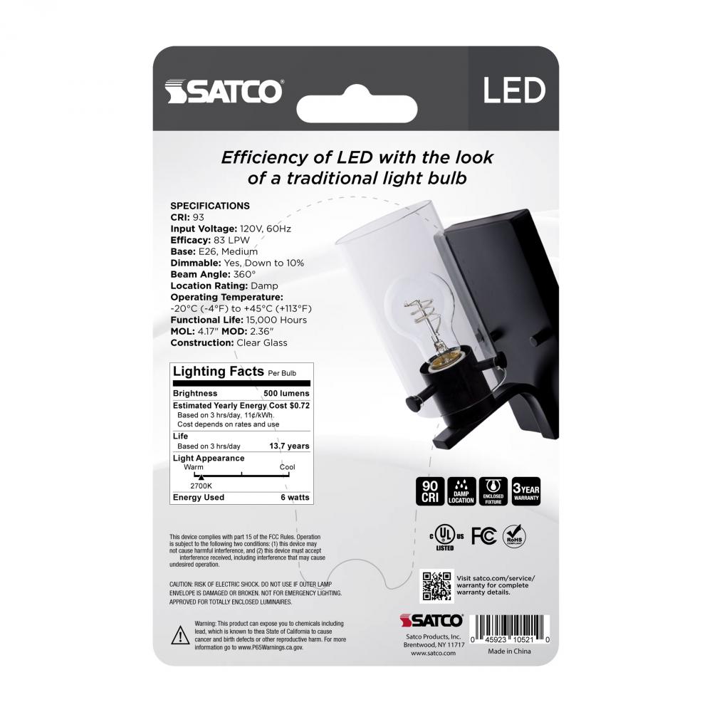 6 Watt LED; Reminiscent; Flex Gray Coil Filament; A19; Medium Base; 2700K CCT; Clear; 120 Volt by Satco Products Inc.