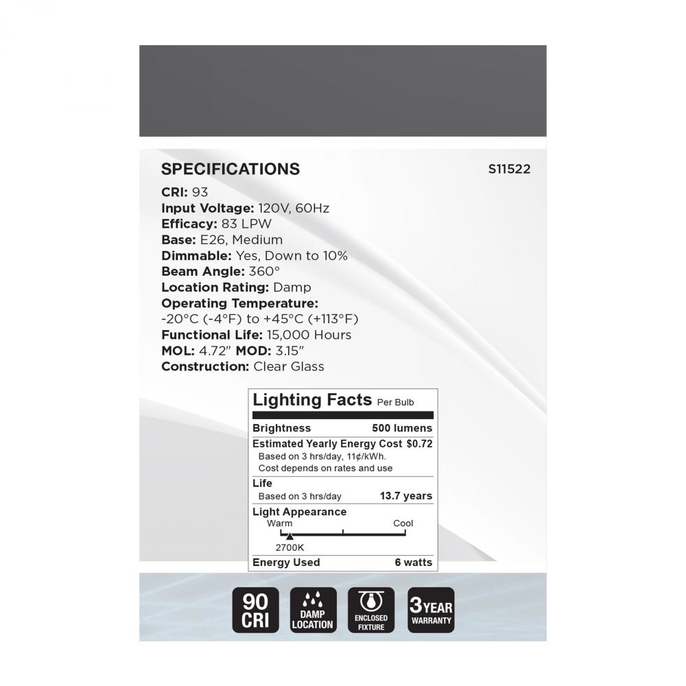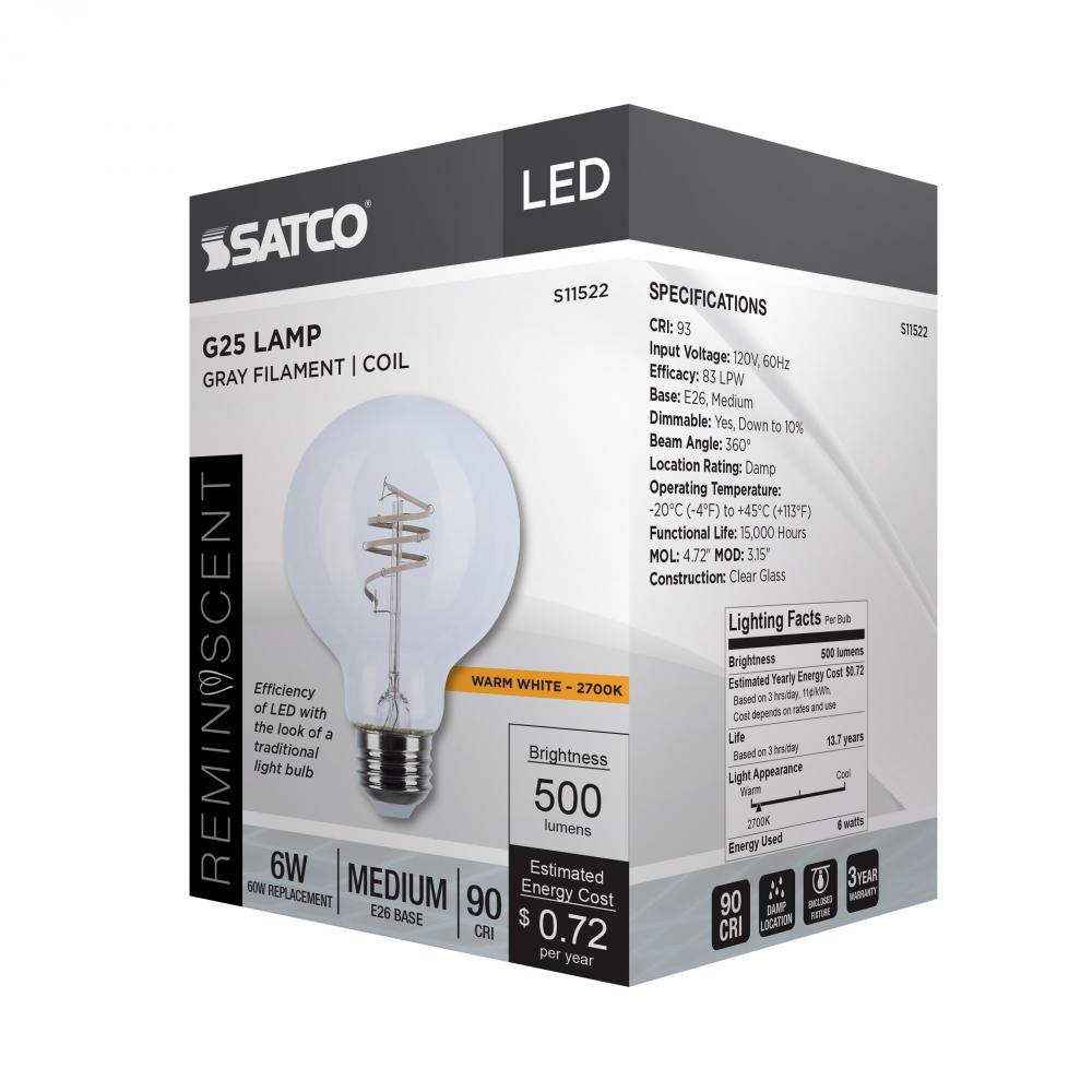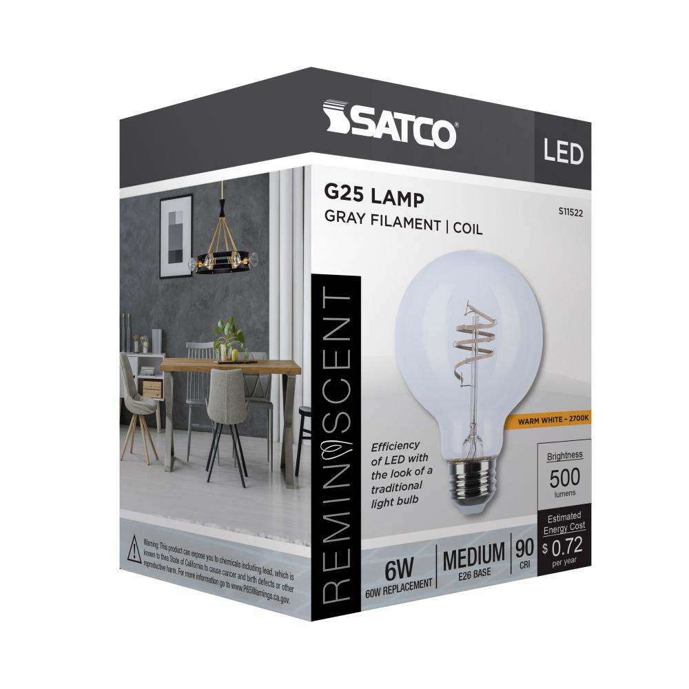 6 Watt LED; Reminiscent; Flex Gray Coil Filament; G25; Medium Base; 2700K CCT; Clear; 120 Volt by Satco Products Inc.