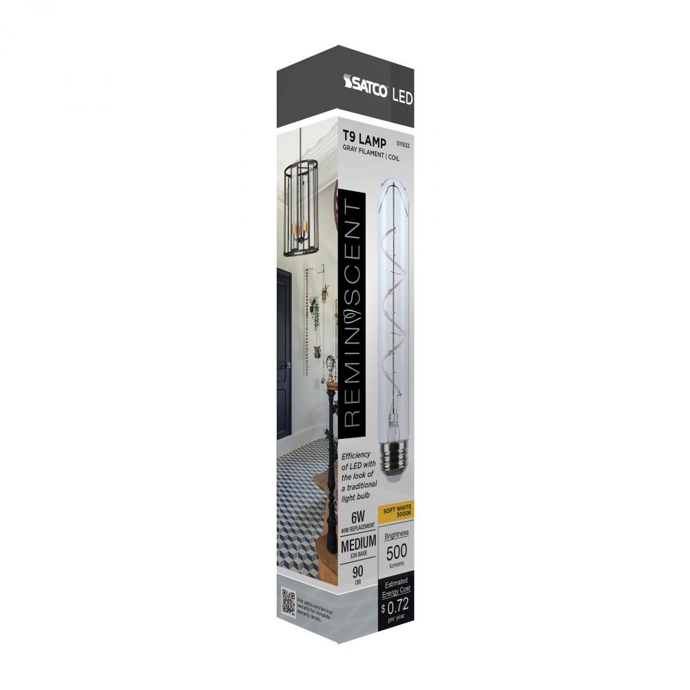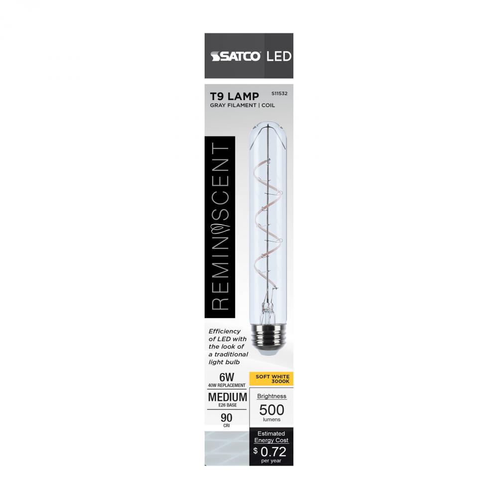 6 Watt T9 LED; Reminiscent; Flex Gray Coil Filament; E26; 3000K; 120 Volt by Satco Products Inc.