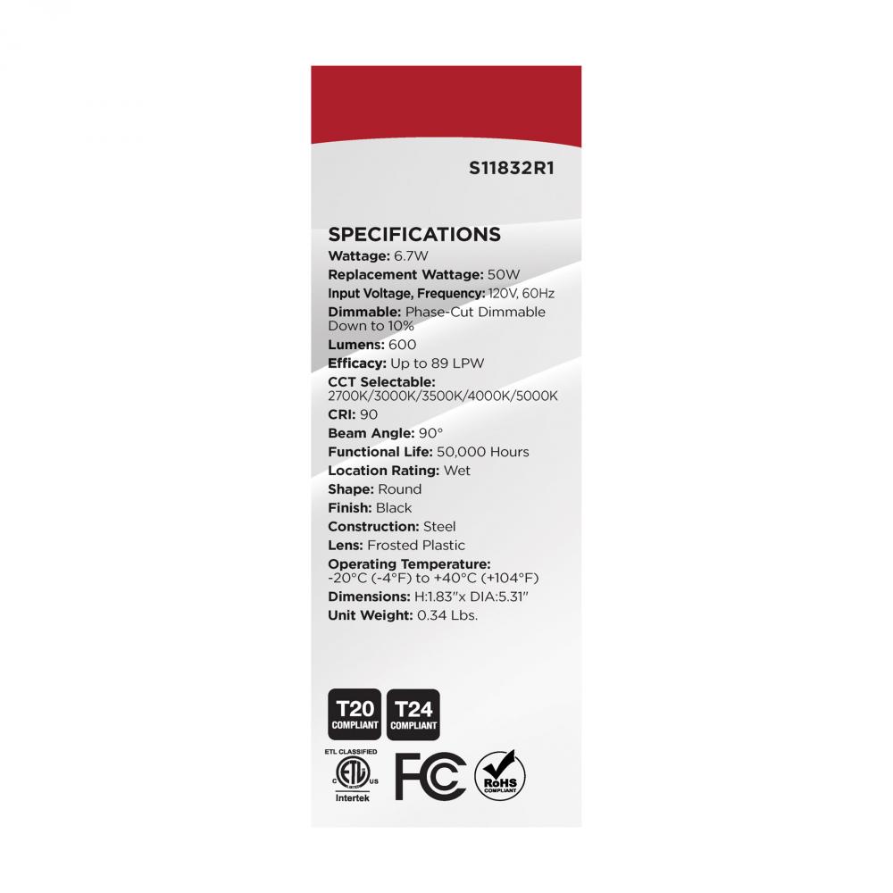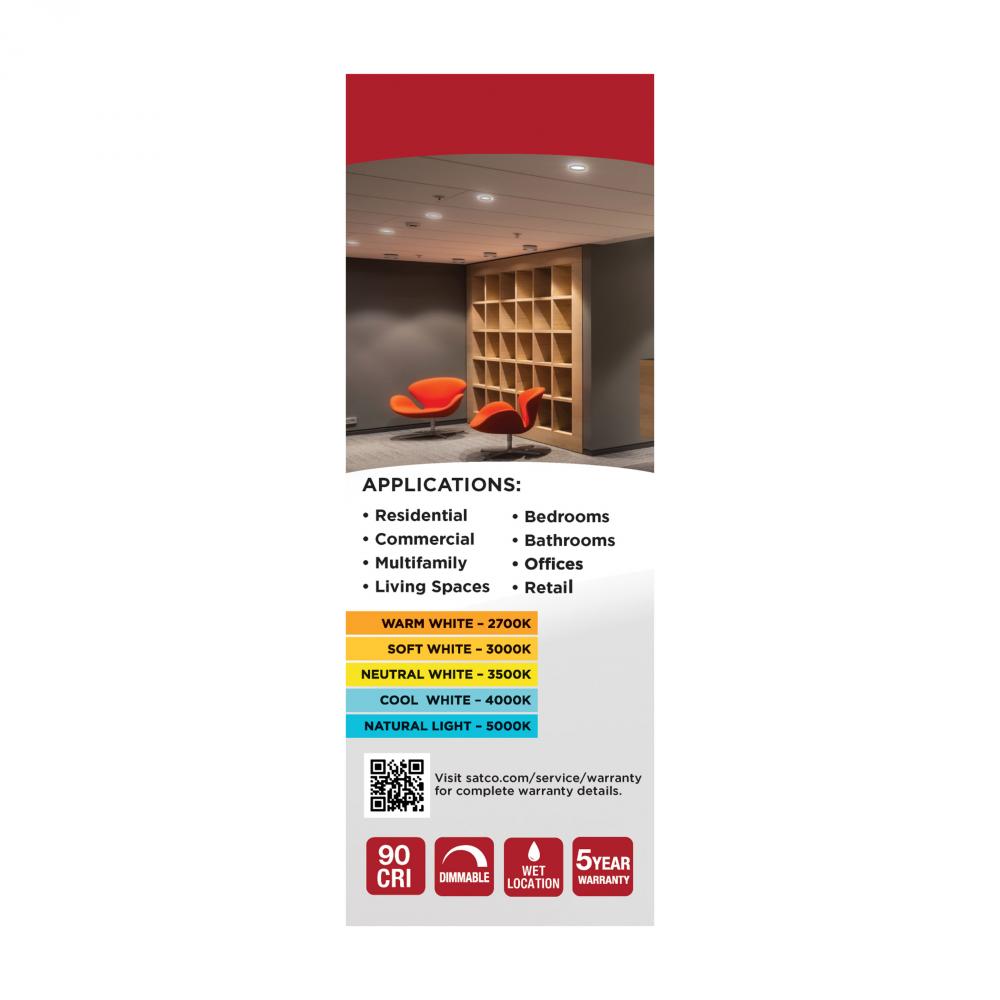 6.7 Watt; LED Downlight Retrofit; 4 Inch; CCT Selectable; 120 Volts; Black Finish by Satco Products Inc.