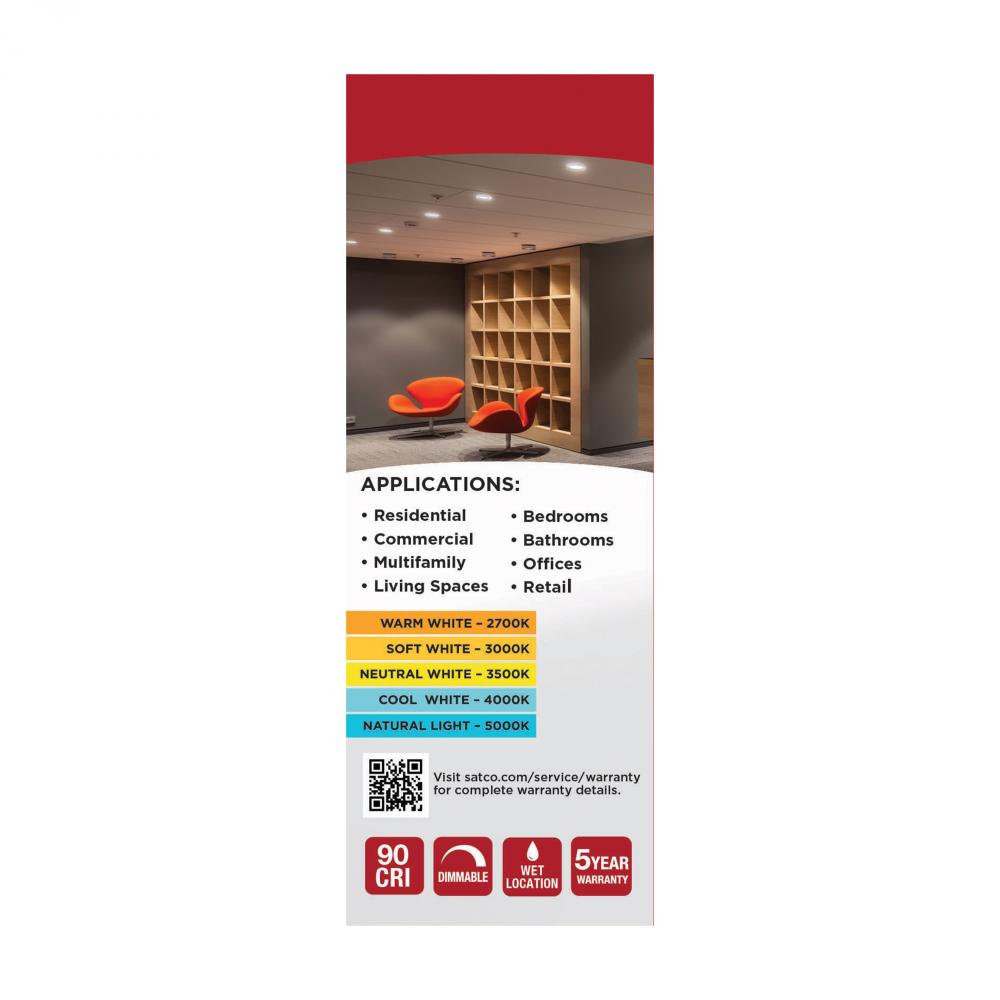 6.7 Watt; LED Downlight Retrofit; 4 Inch; CCT Selectable; 120 Volts; Brushed Nickel Finish by Satco Products Inc.
