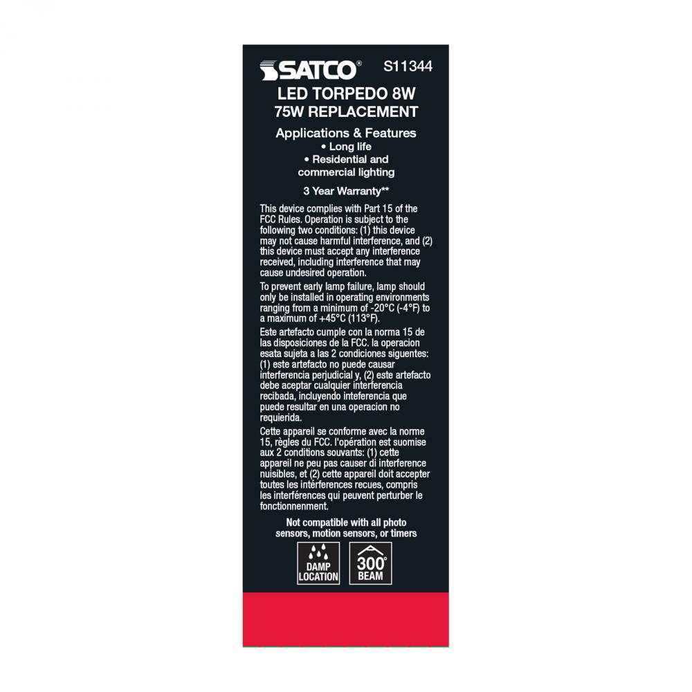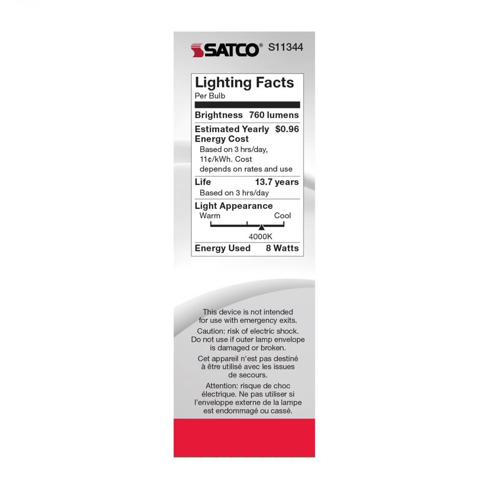 Satco's S11344 8-watt LED bulb is an elegant lighting solution for the home. Perfect for chandeliers, use this dimmable lamp to illuminate living rooms, dining rooms, or anywhere else where a traditional look will complement decorative needs. The bulb