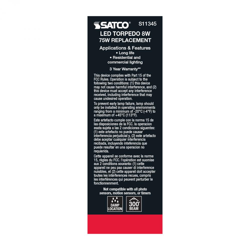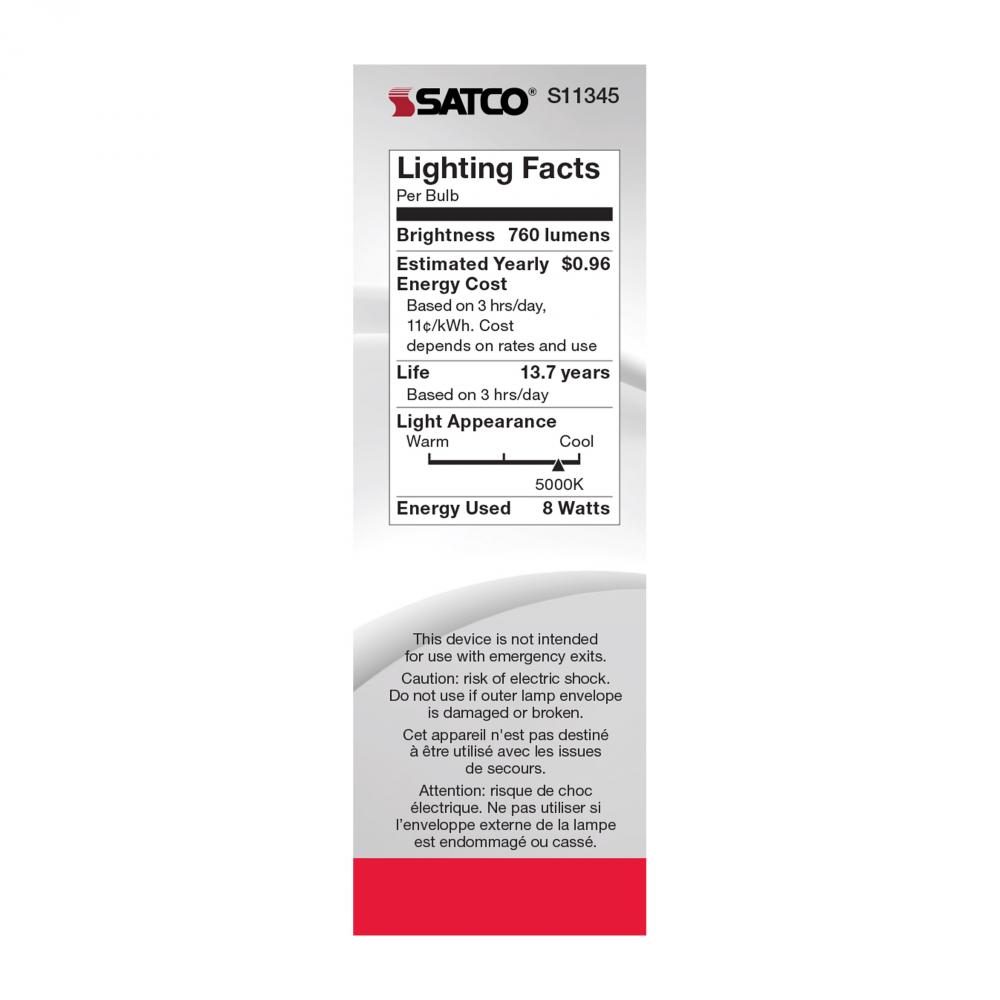 Satco's S11345 8-watt LED bulb is an elegant lighting solution for the home. Perfect for chandeliers, use this dimmable lamp to illuminate living rooms, dining rooms, or anywhere else where a traditional look will complement decorative needs. The bulb