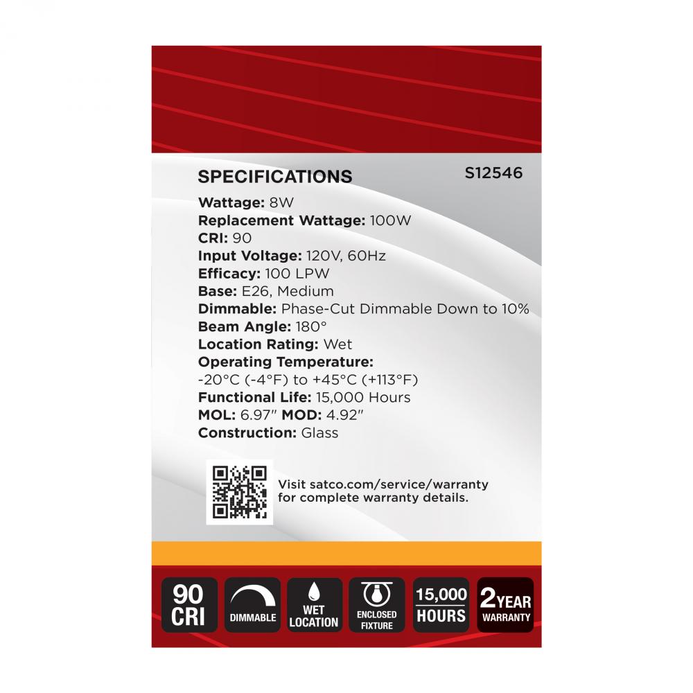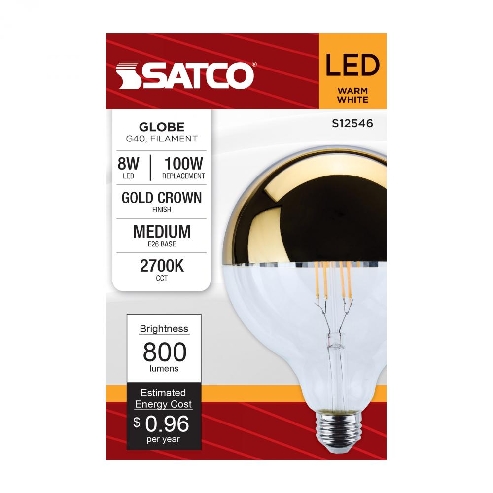 8 Watt G40 LED; Medium Base; 2700K CCT; Gold Crown; 100 Watt Replacement by Satco Products Inc.