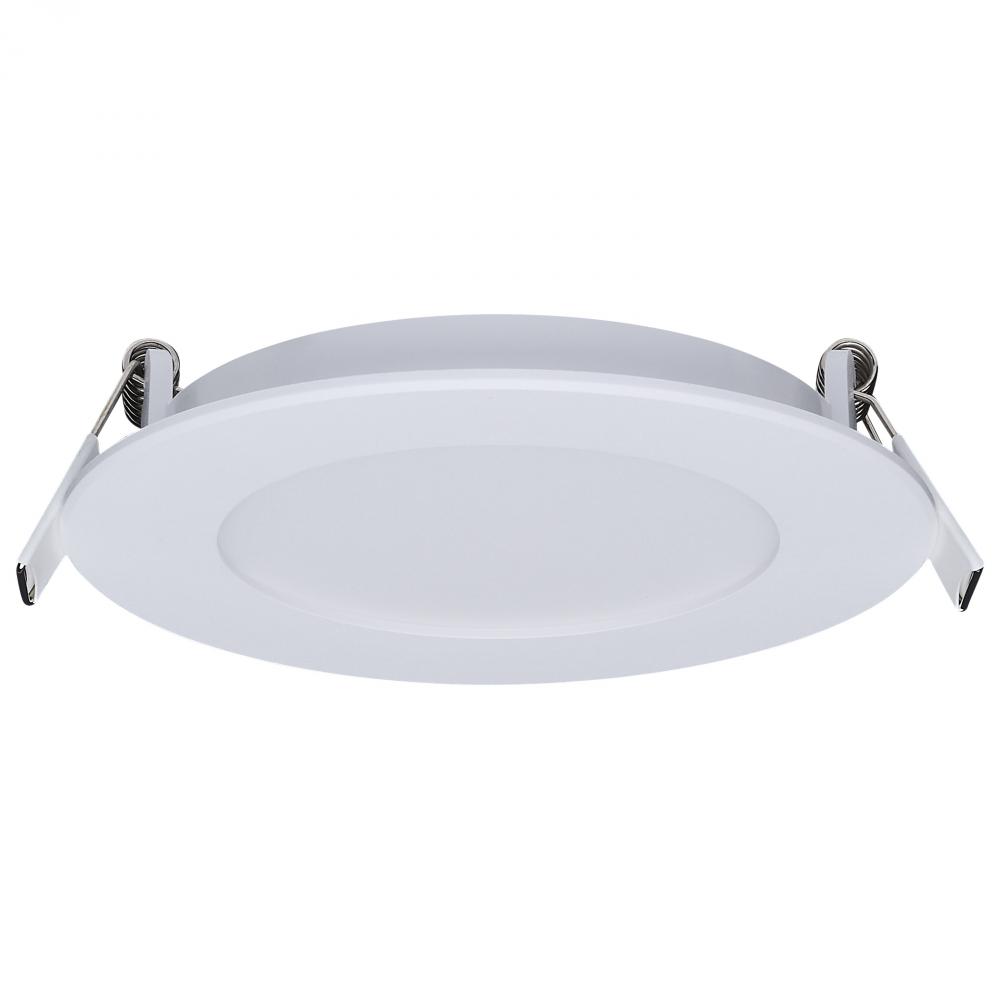SATCO NUVO's S11680 white finish 4-inch round Performer Series LED Slimfit Downlight combines sleek design with high-performance versatility. Featuring a flat lens, adjustable spring clips, and an innovative remote driver J-box, it offers easy installa