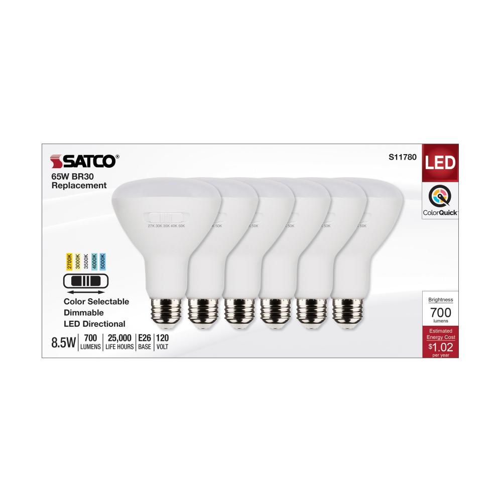 8.5 Watt BR30 LED; Medium Base; CCT Selectable; White Finish; 90 CRI; 120 Volt; 6 Pack by Satco Products Inc.