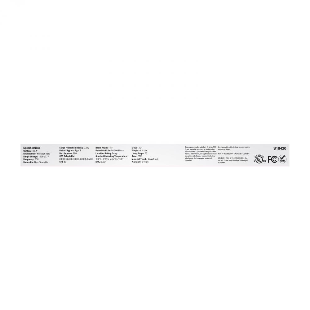 8.5 Watt PLL LED; 2G11 Base; 30K/35K/40K/50K/65K CCT Selectable; Ballast Bypass; 120-277 Volt by Satco Products Inc.