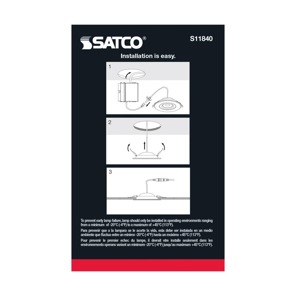 The white, four-inch round Satco S11840 gimbaled downlight delivers multiple advantages to any general recessed lighting project. Our ColorQuick technology allows the user to choose the color temperature from five different settings and brings the perfect