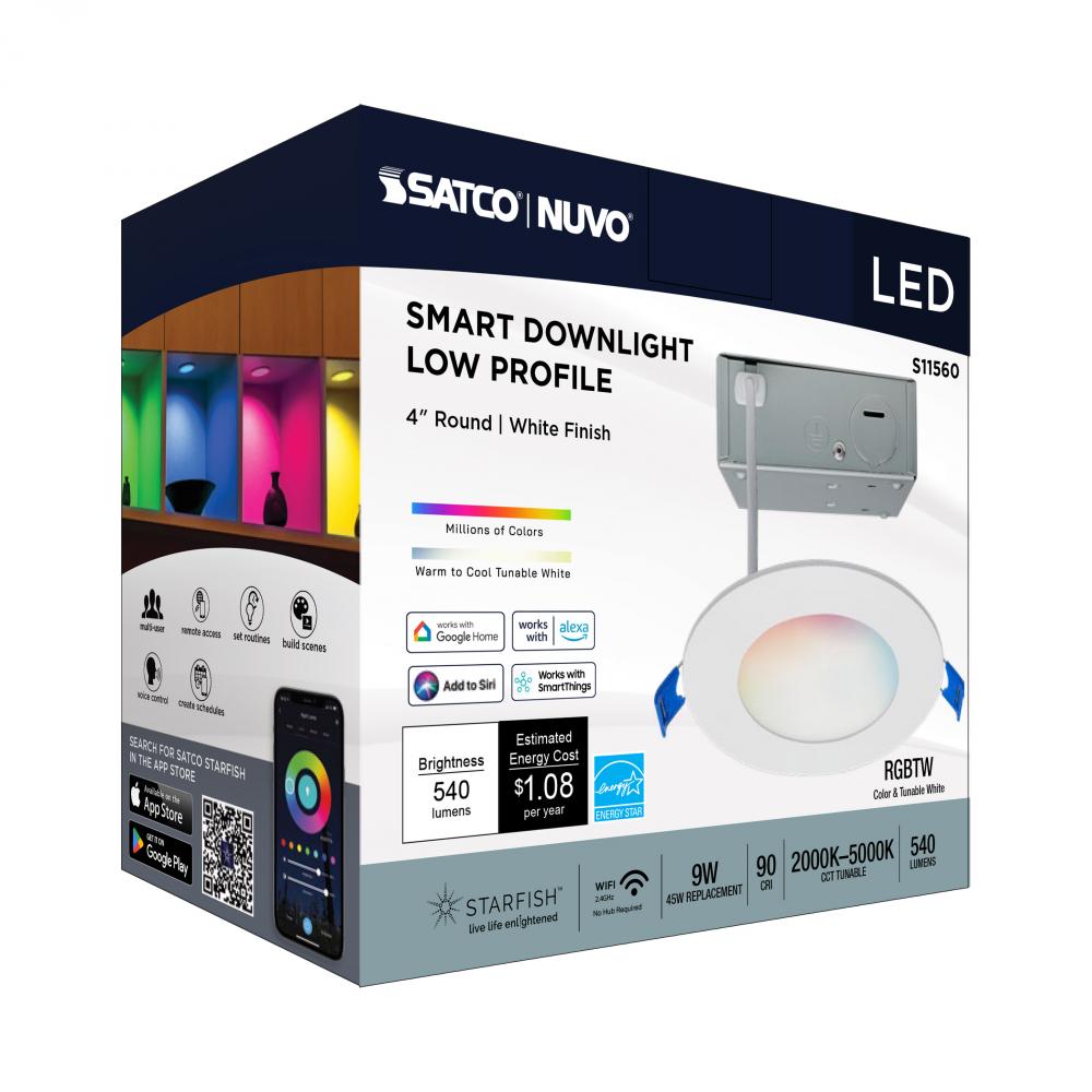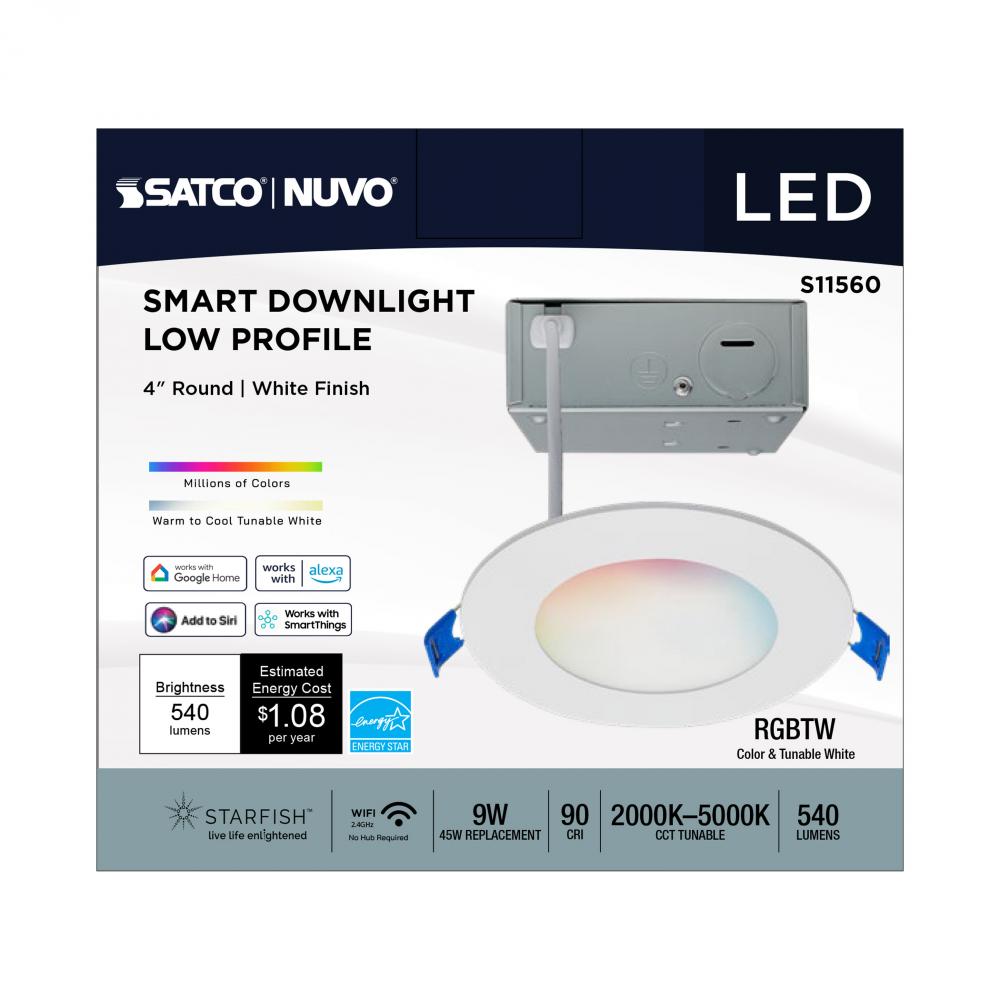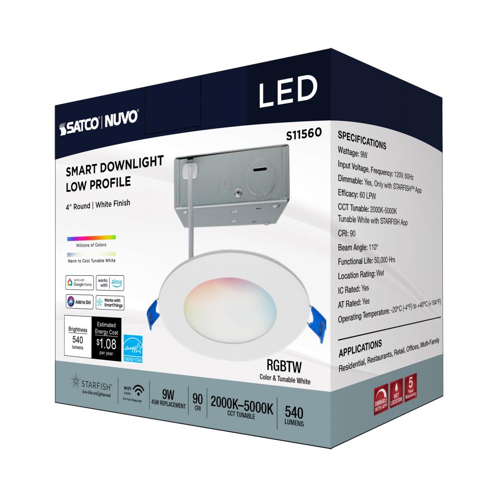 SATCO NUVO's S11560 LED Slimfit Downlight with STARFISH technology is the ultimate choice for smart lighting and ambiance control. Download the STARFISH app to customize any tunable white color temperatures from 2000K warm white to 5000K natural light