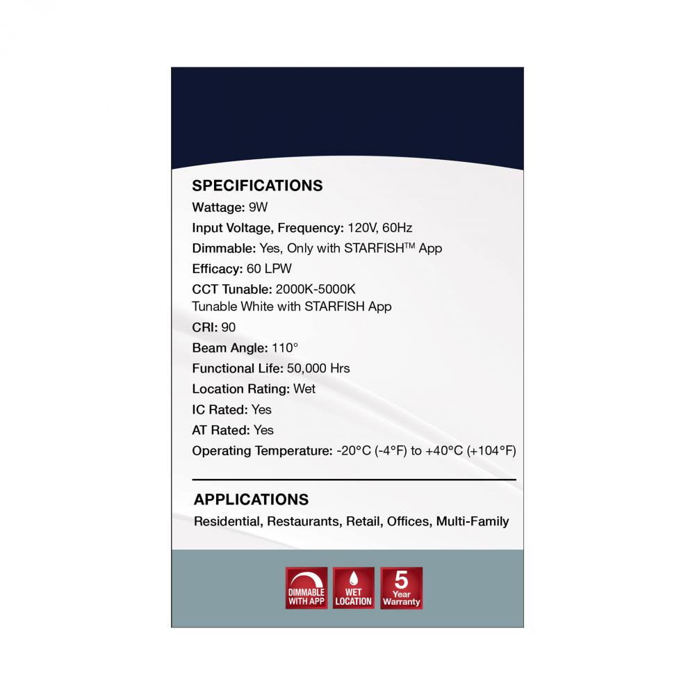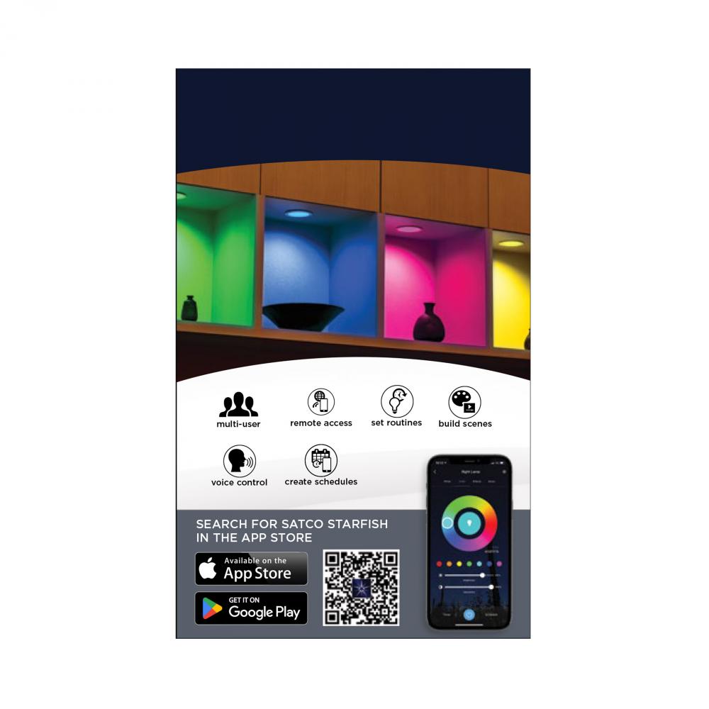 SATCO NUVO's LED Slimfit Downlights with STARFISH technology are the ultimate choice for smart lighting and ambiance control. Download the STARFISH app to customize any tunable white color temperatures from 2000K warm white to 5000K natural light or ch