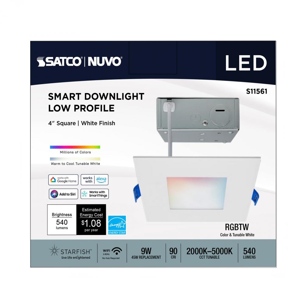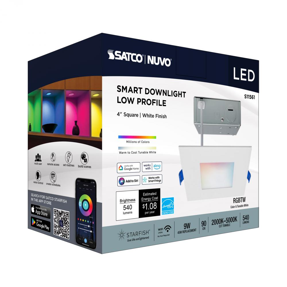 9 Watt; LED Direct Wire; Low Profile Downlight; 4 Inch Square; Starfish IOT; Tunable White and RGB; by Satco Products Inc.