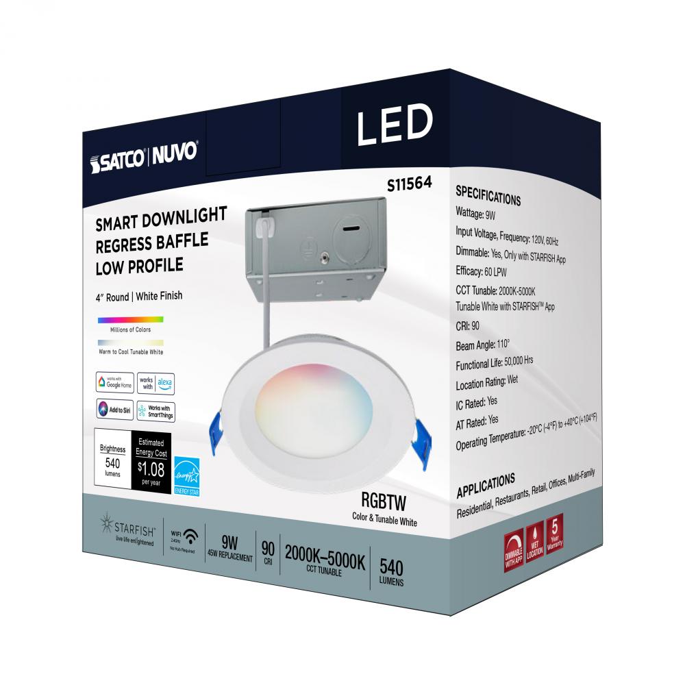 SATCO NUVO's S11564 LED Slimfit Downlight with STARFISH technology is the ultimate choice for smart lighting and ambiance control. Download the STARFISH app to customize any tunable white color temperatures from 2000K warm white to 5000K natural light
