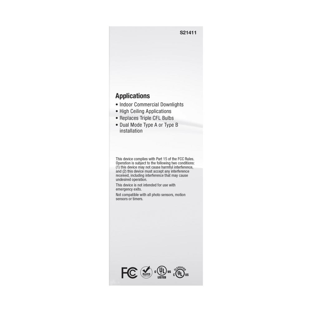 Suggested for use in Indoor commercial downlights and high ceiling applications