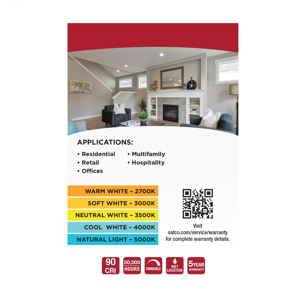 SATCO NUVO's S11882 4-inch round field selectable deep baffle retrofit downlight is designed with the look of sophistication in mind. The deep stepped baffle crafted on this downlight drastically reduces glare and with a high CRI rating of 90, users ca