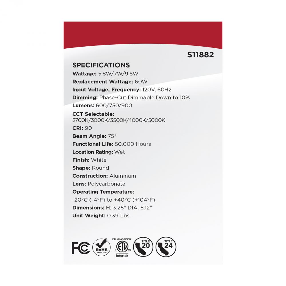 CCT and Wattage Selectable