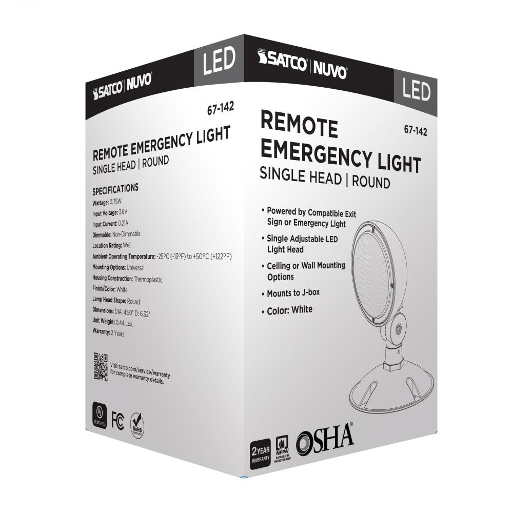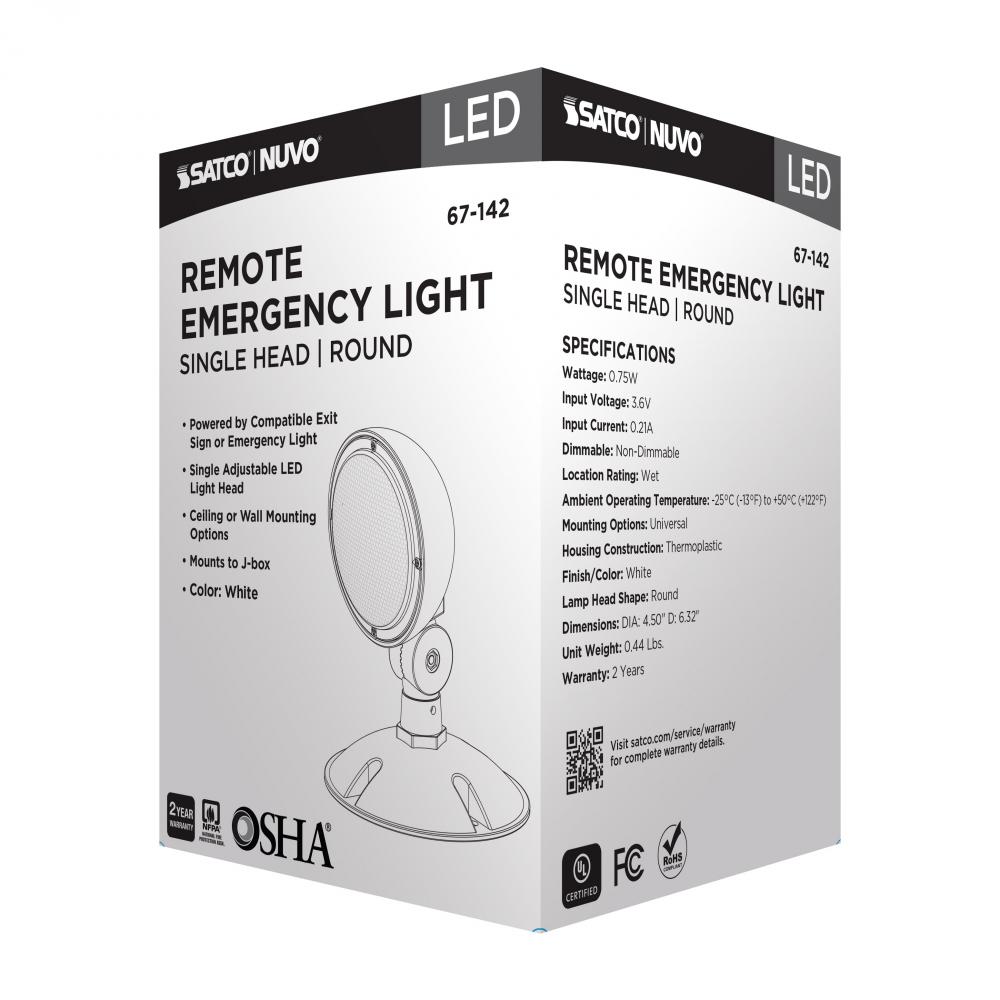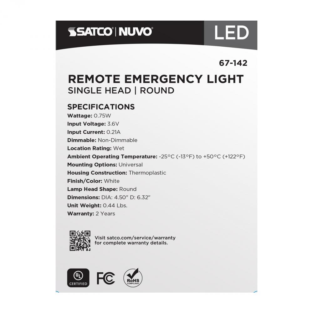 Remote Emergency Light; 0.75 Watt; Weatherproof Low Power Single Head; White Finish; 3.6 Volt by Satco Products Inc.