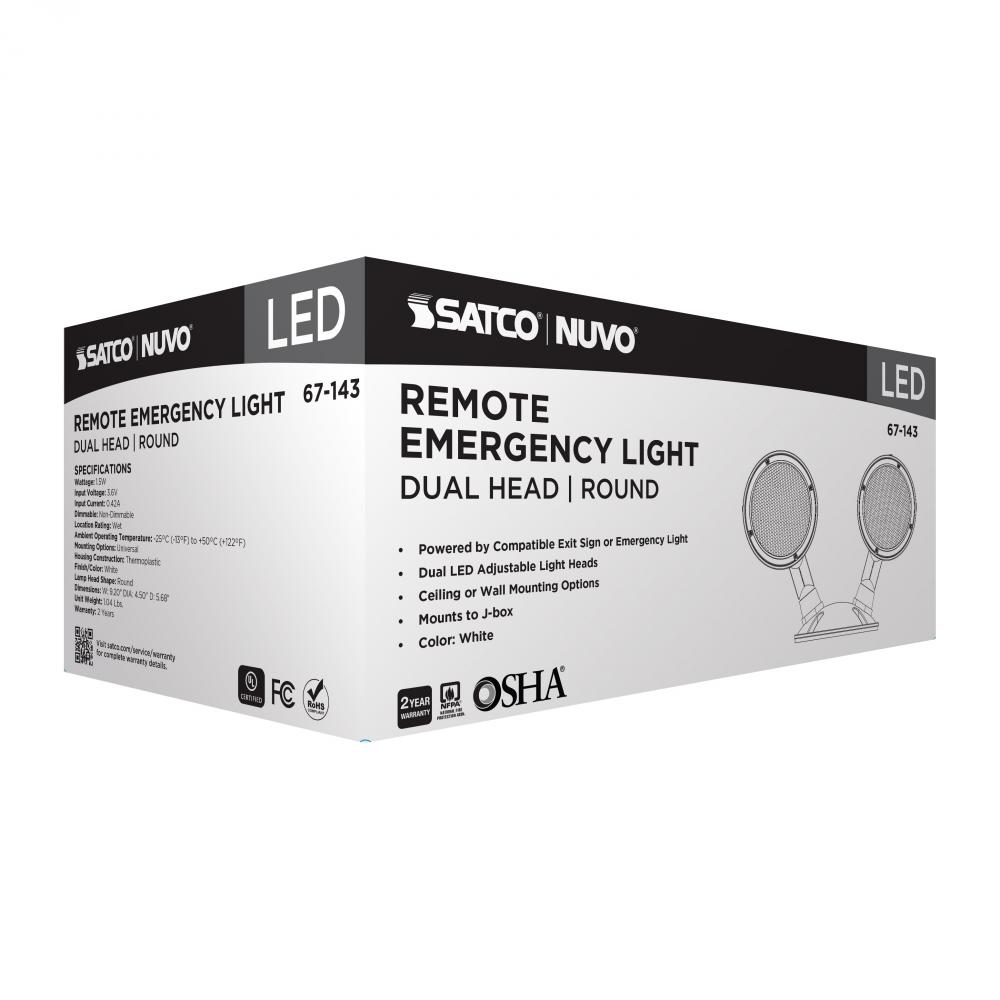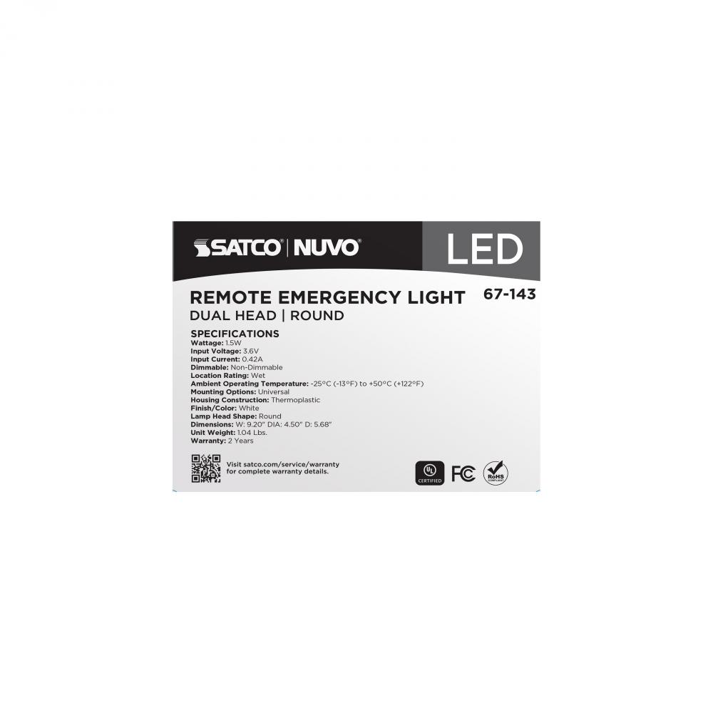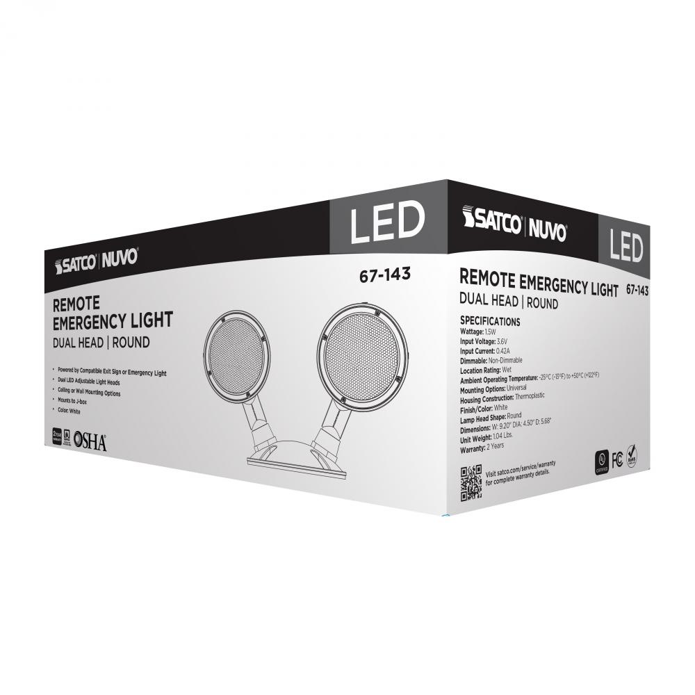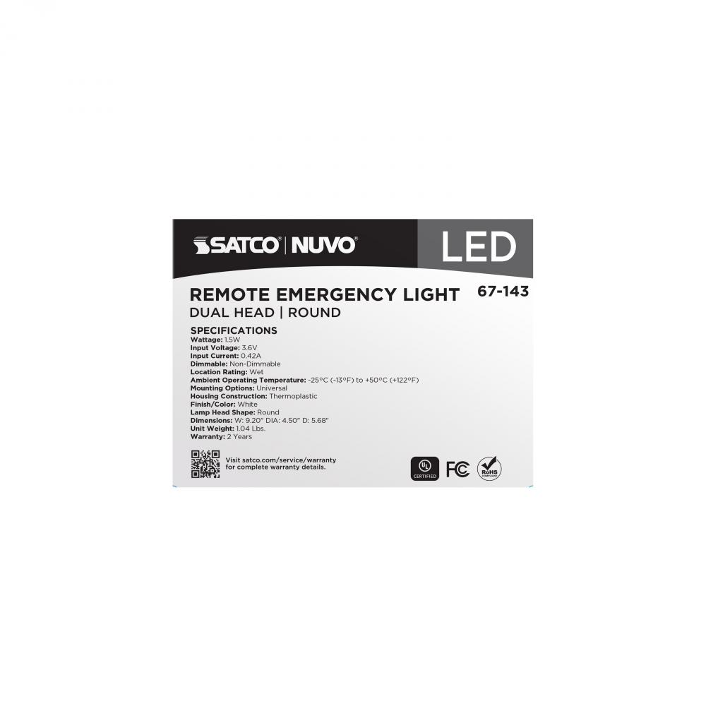 Remote Emergency Light; 1.5 Watt; Weatherproof Low Power Dual Head; White Finish; 3.6 Volt by Satco Products Inc.