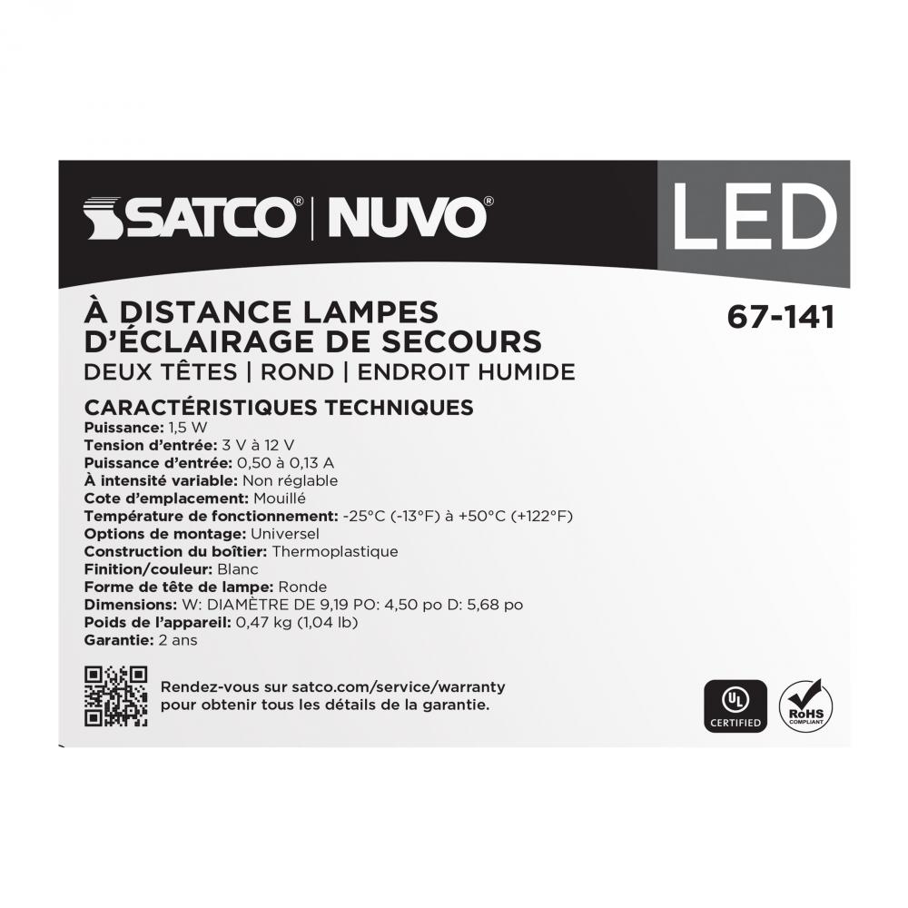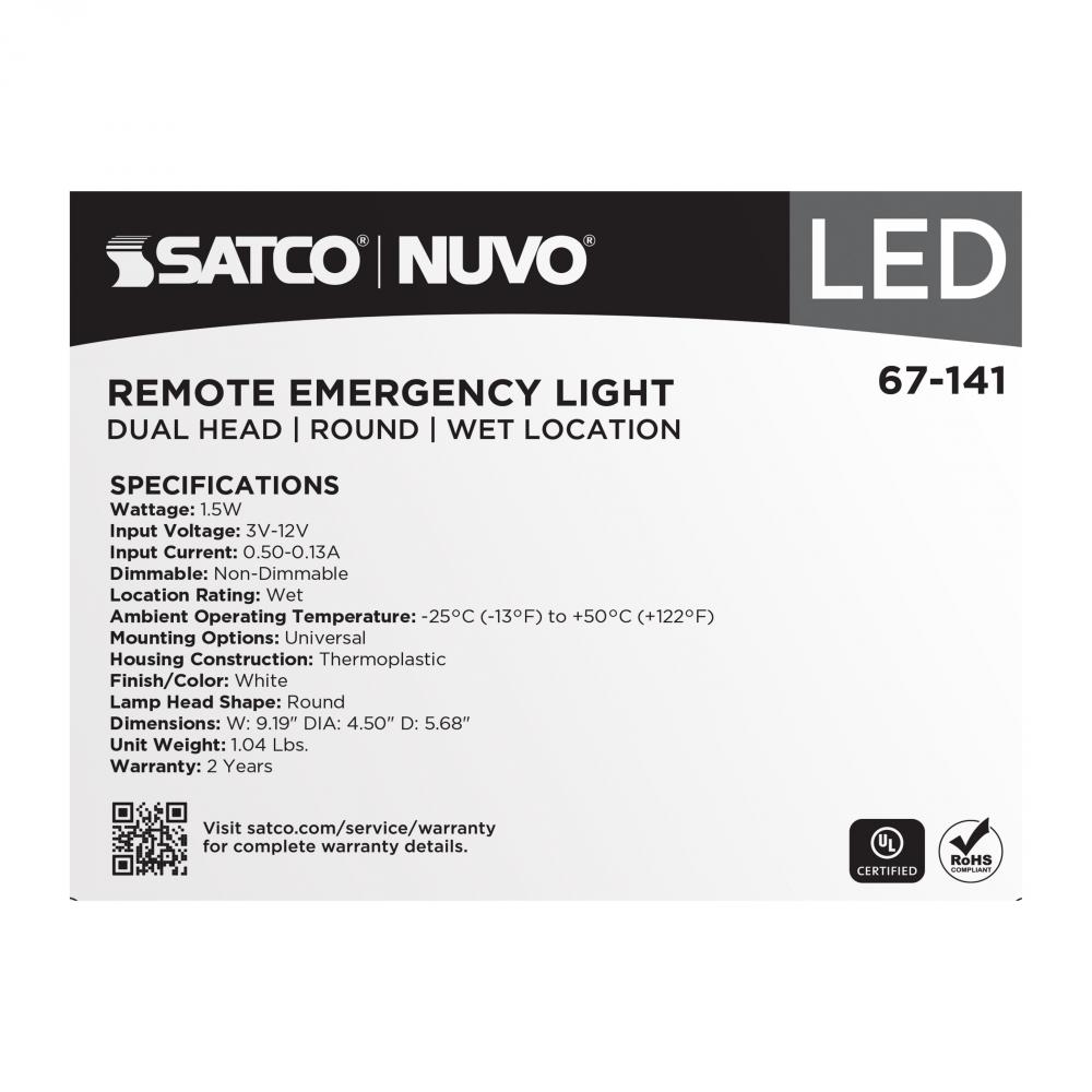 Remote Emergency Light; Weatherproof Low Power Dual Head; 3-12V 1.5W; White Finish by Satco Products Inc.