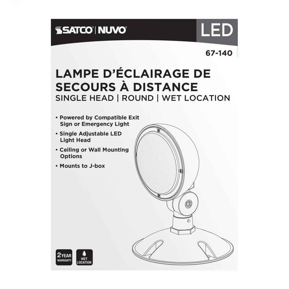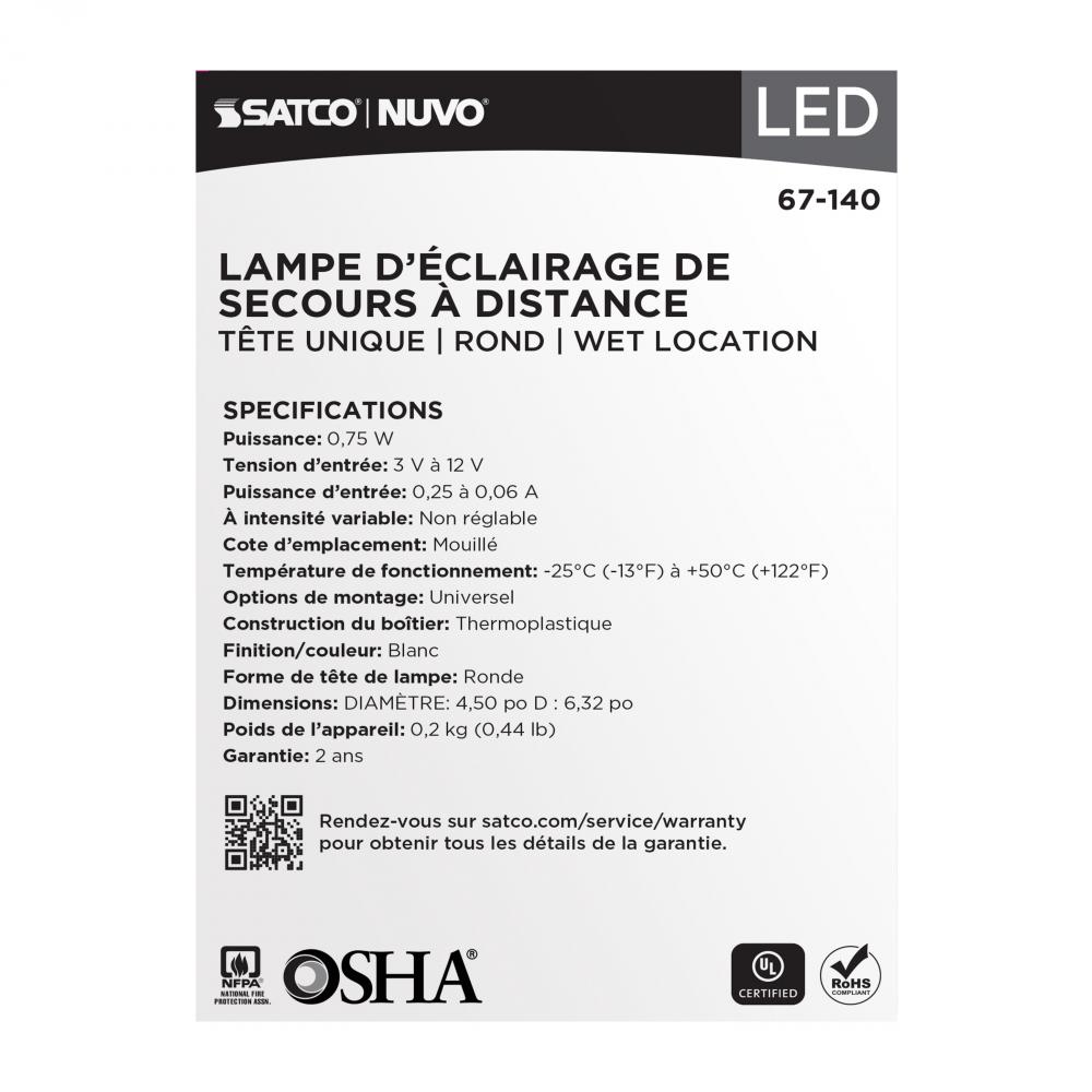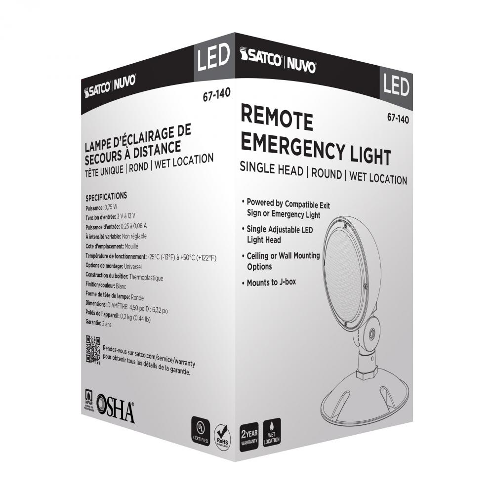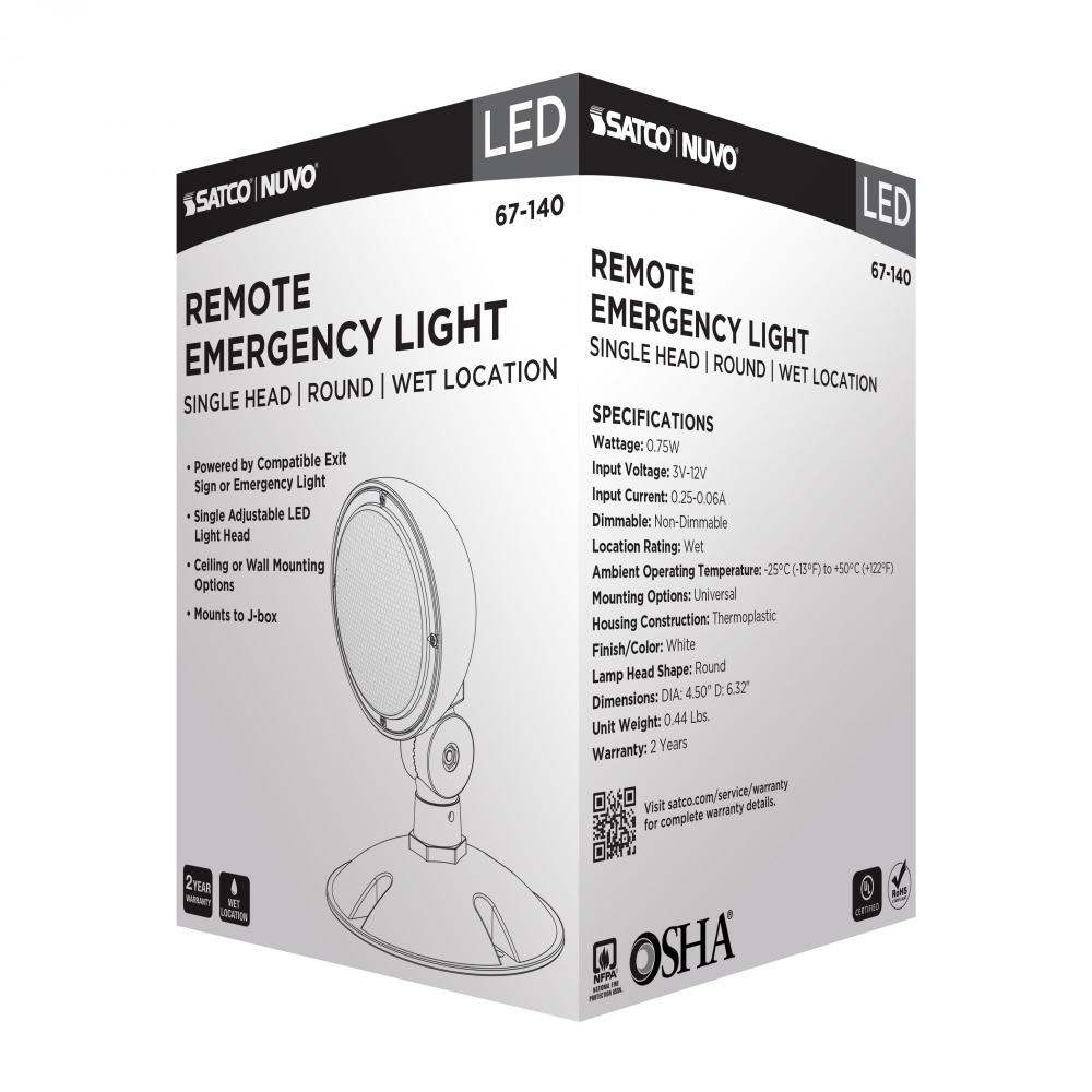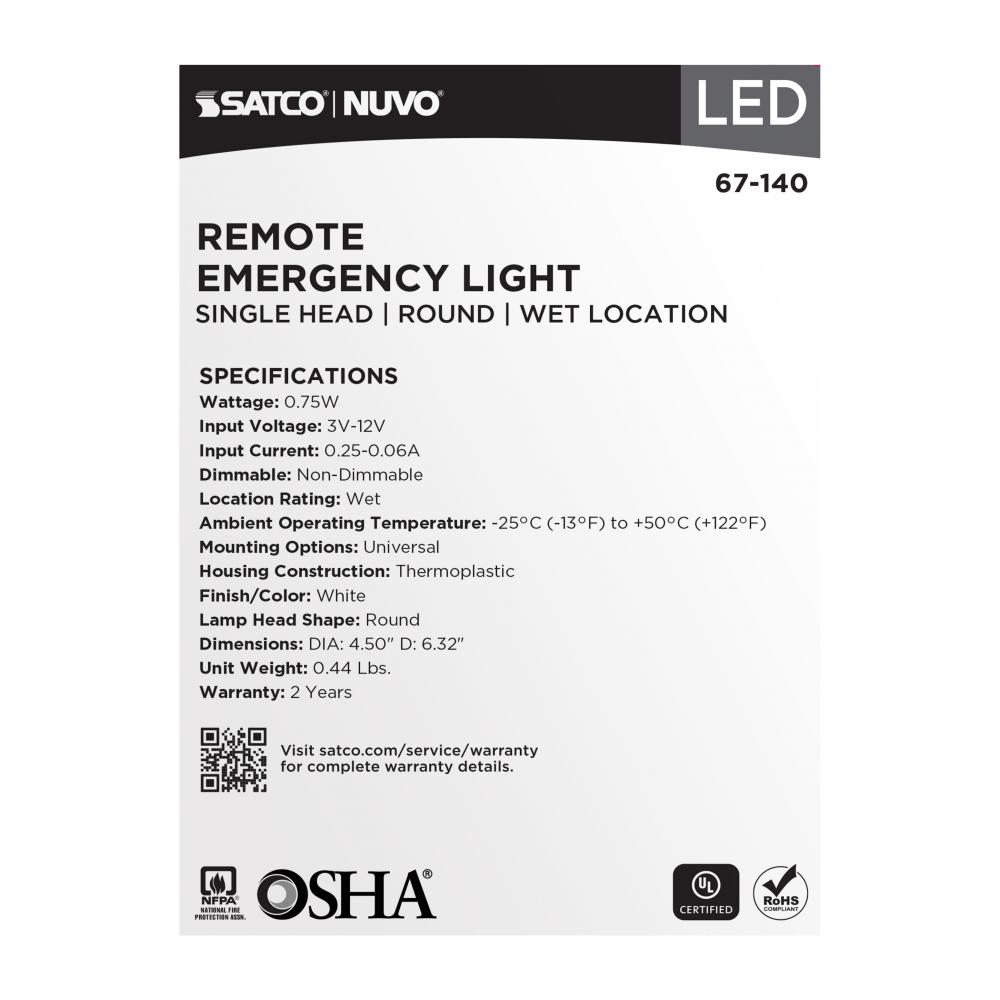 Remote Emergency Light; Weatherproof Low Power Single Head; 3-12V 0.75W; White Finish by Satco Products Inc.